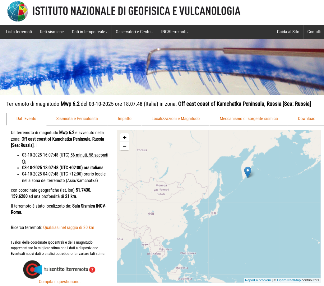 At 17:02 UTC ITF unlocked due to a strong earthquake occurred in Russia with Mag. 6.2, (fig1). EARTHQUAKE mode set.