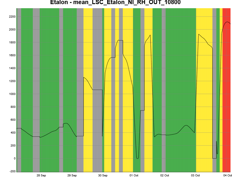 At the earliest occasion the temperature of both and WI and NI etalon set point should be reduced by one fringe for each of them to cope with the lower ambient temperature.