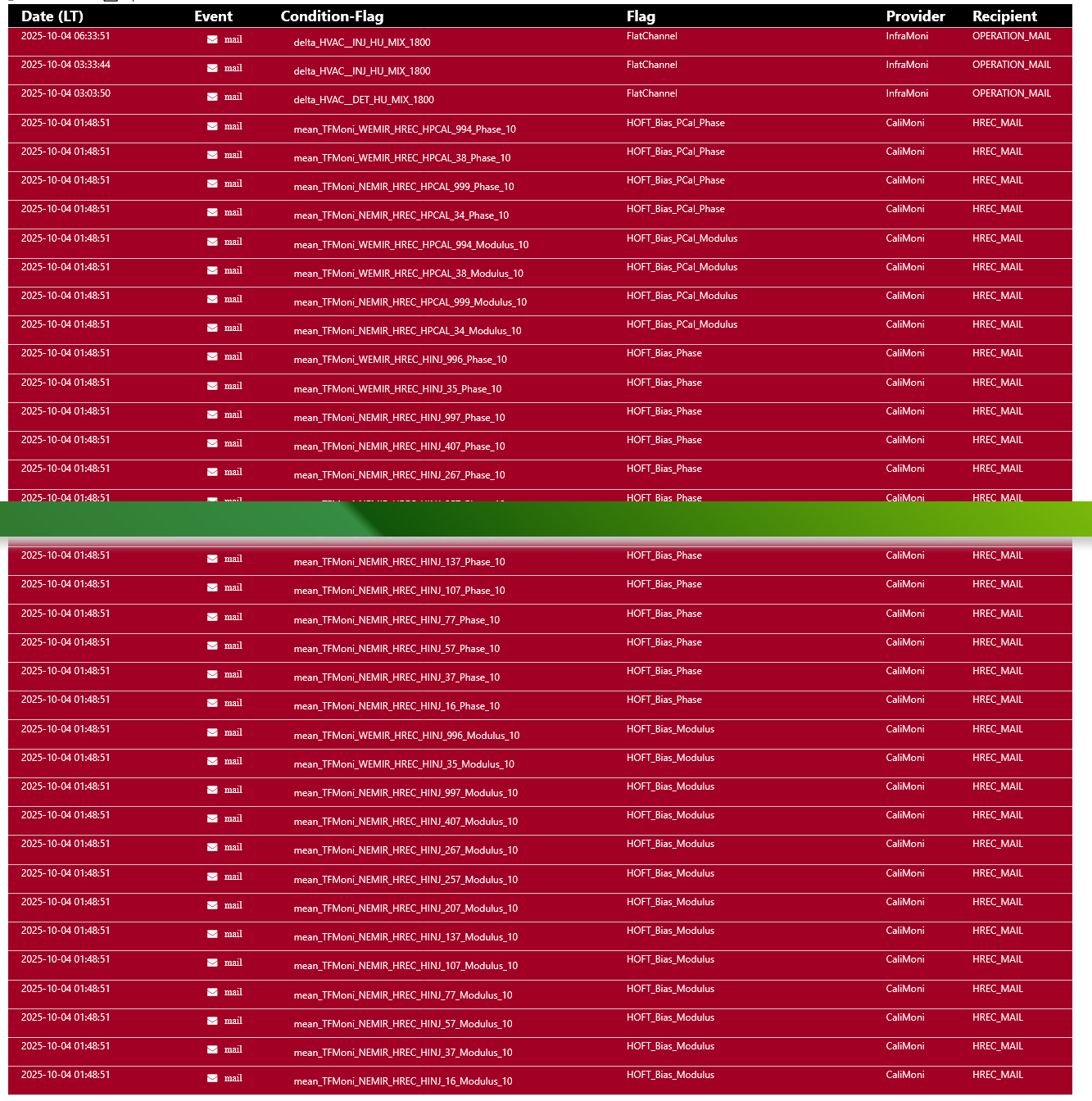 Actions undertaken: NARM showing no triggers (WARM showing no problems) after CALIBRATED_PRWI. Realigned