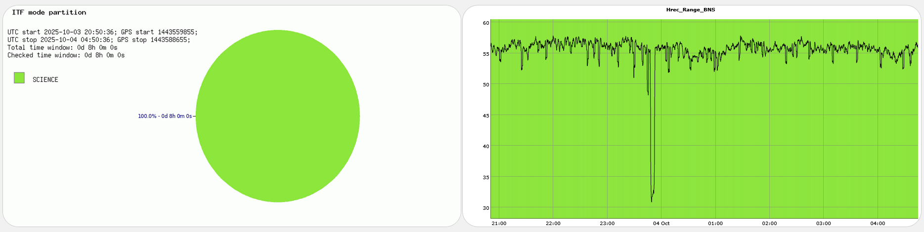 At 1:11 UTC the value of Hrec_Range_BNS jumped to 0 for around a minute due to missing data of SUSP_Fb.