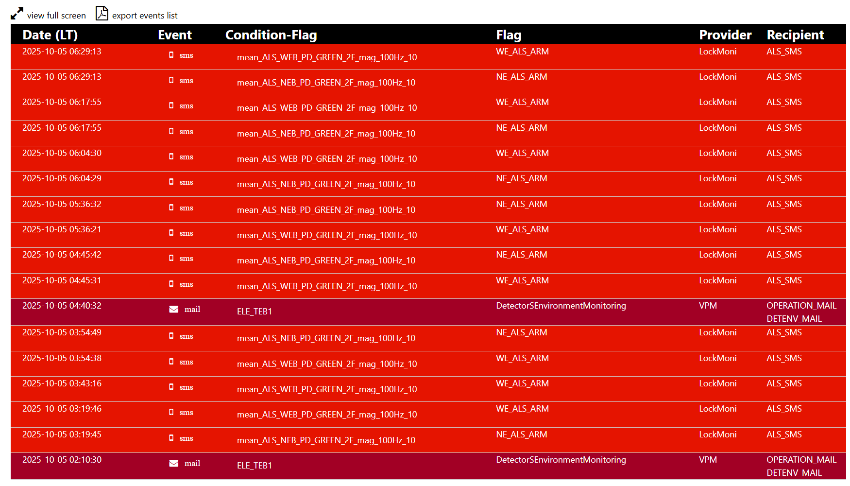13:00 UTC ITF found in SCIENCE, range oscillating between 8 and 50 Mpc, wind activity and sea activity flags red