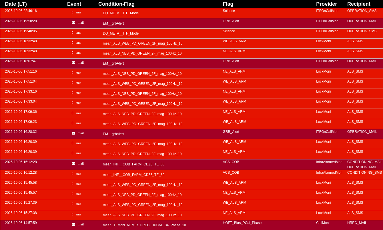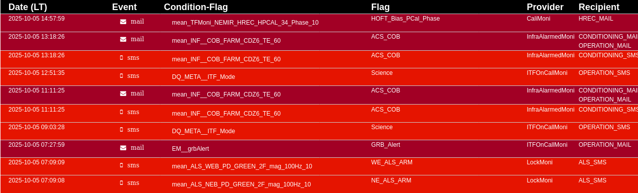 16:00 UTC ITF in CALIBRATION (measurements with ITF unlocked)