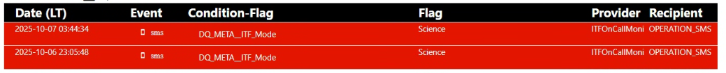 ITF found in ACQUIRE_LOW_NOISE_3 and in Prepare_Science Mode. Back in Science Mode from 21:07 UTC.