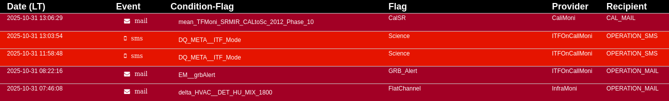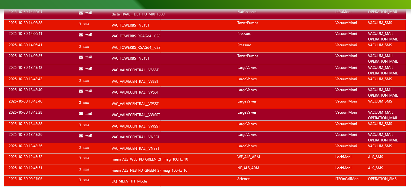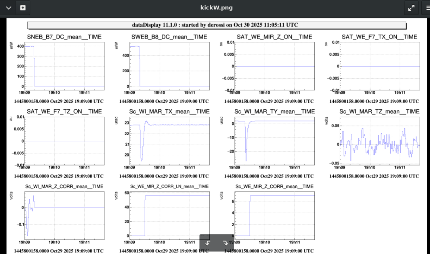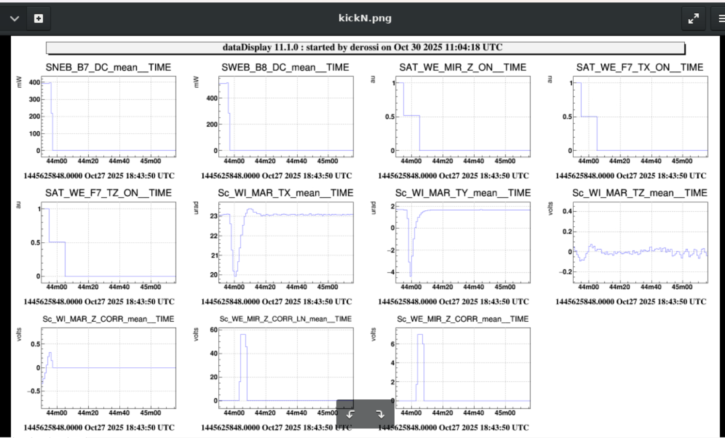 - If the sensitivity is bad after the thermal transient and the ITF unlocks, set again the PR CHROCC at 4.29V with ramptime 1500 sec and increase the MICH_SET value (after parking in CARM_NULL_1F for ~10 minutes) in steps (0->20 in 200s), (20->40 in 200s), (40->60 in 200s), (60->65 in 60s) until power on B1p decreases to ~0.02 mA and EDB_B1p 6, 56MHz upper & lower sidebands become superposed (or balanced) before progressing lock acquisition.