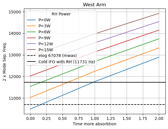 We can then explore the range of 2nd order mode frequencies as a function of absorbtion and RH power (caveat that I'm not totally sure on Clément's measurements). This is shown in the attachements.