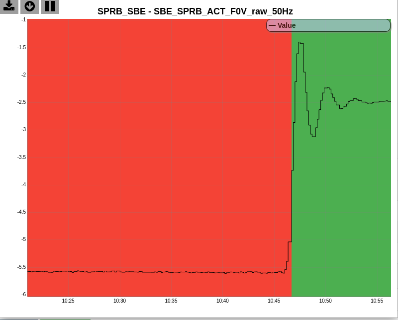 10:51 Recovered SPRB_SBE Vertical Position with motors due to SBE_SPRB_ACT_F0V_raw_50Hz close to saturation (DMS flag red, see Fig 1.). Operation done without open Position Loops.