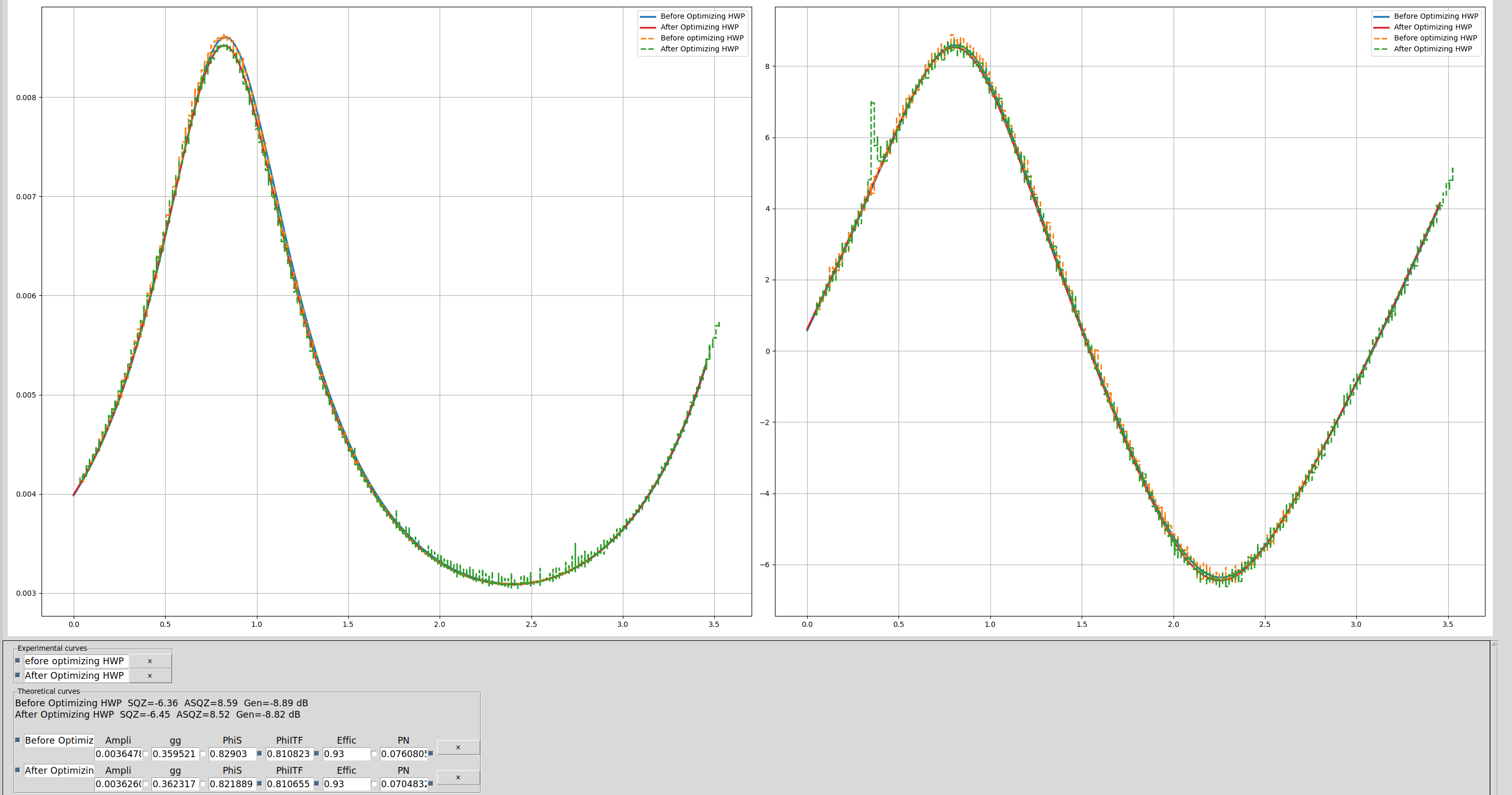 In fig 3 and it is visible that the pahase noise is sligthly decreased from 68 to 62 mrad by rotating the HWP. This variation is inside the measurement error so we are nto completely sure about this improvement.