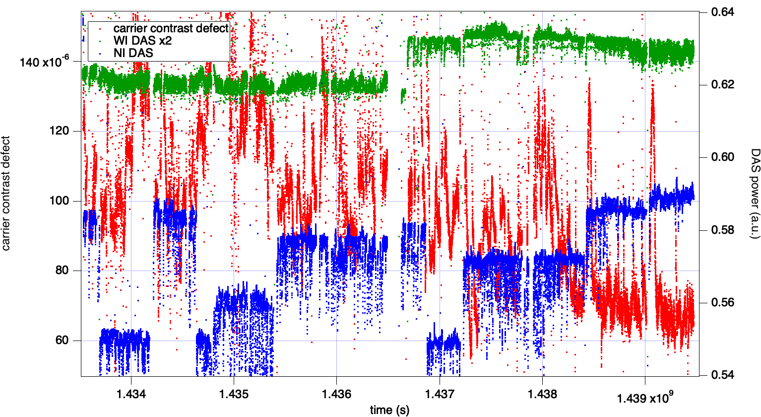 The attached plot shows an example of the impact of DAS tuning on carrier contrast defect. Carrier contrast defect is computed as the ratio of calibrated B4 power to calibrated B1p carrier power, where the fraction of carrier in B1p is extracted from the B1p phase camera. Data refer to the DAS tuning done after WE mirror replacement, and span from June 10 to August 17 2025, i.e. after the ETM RH tuning was over.