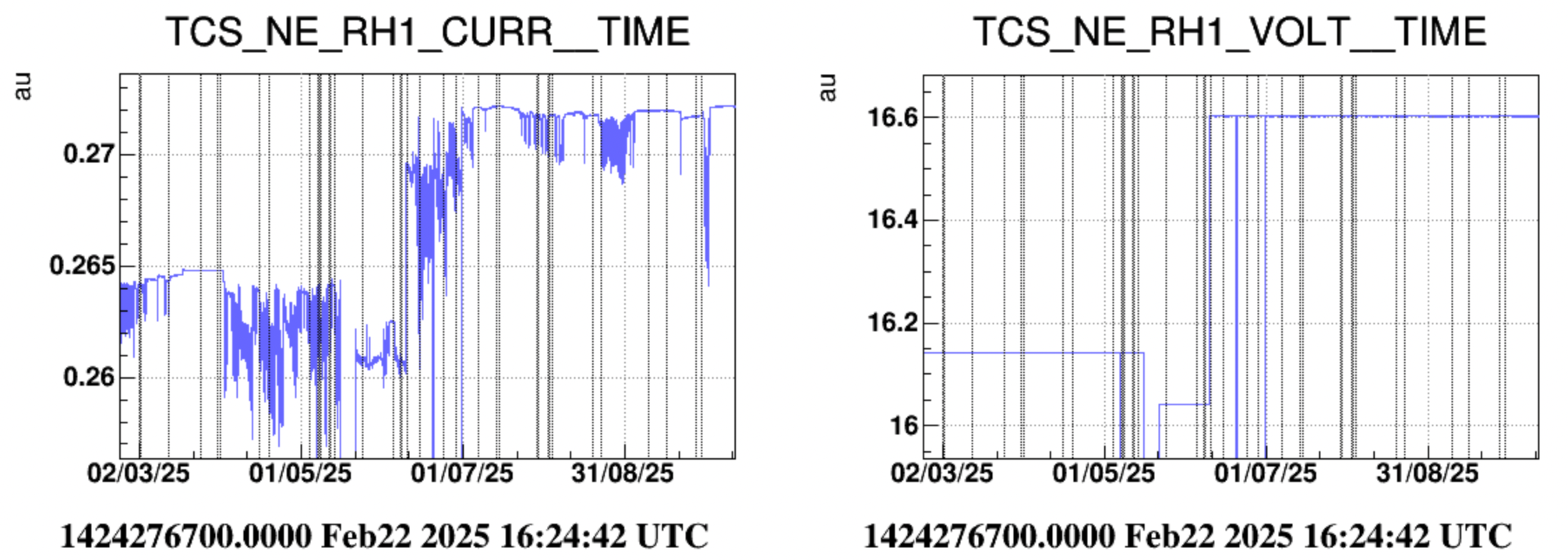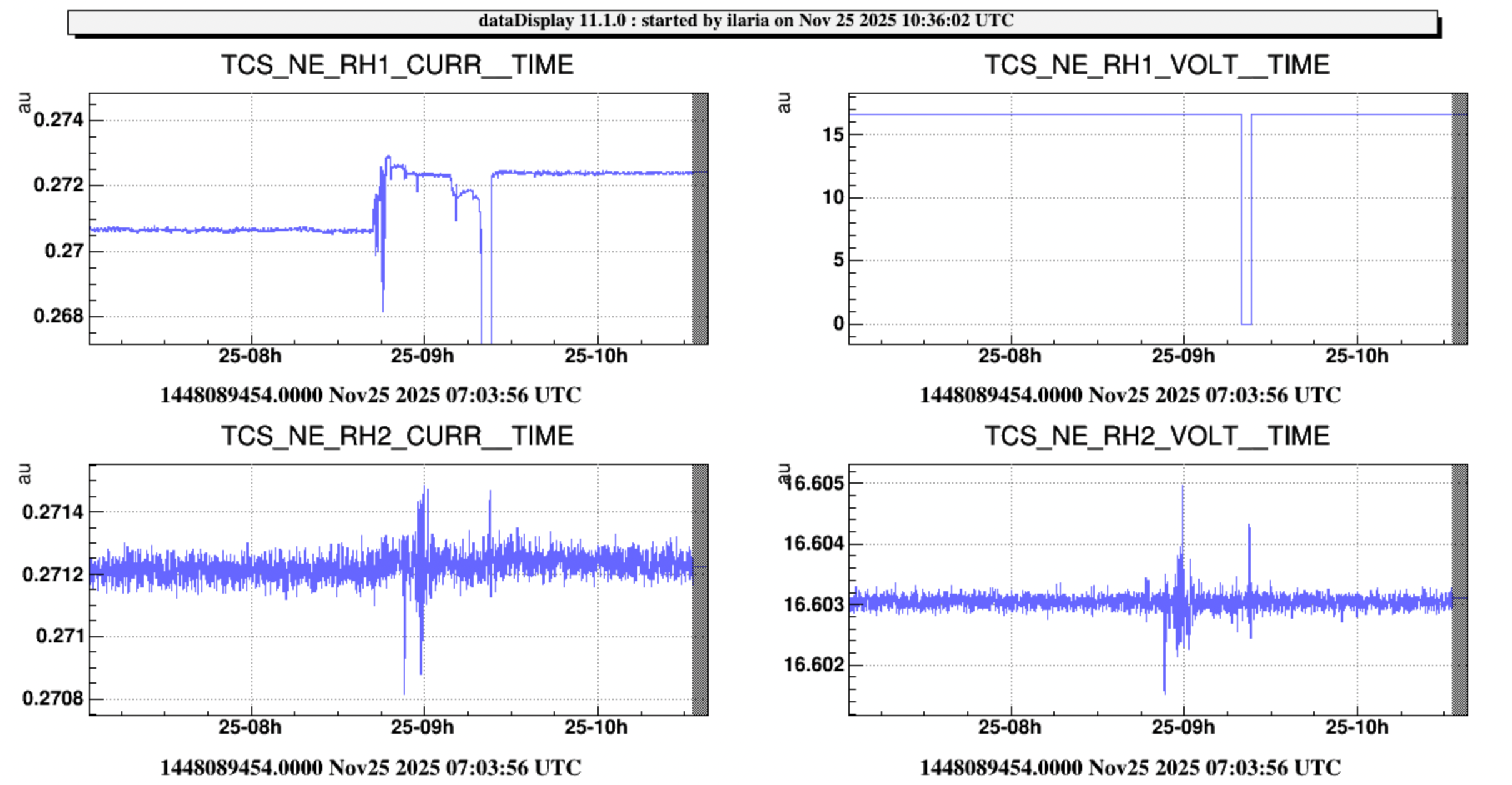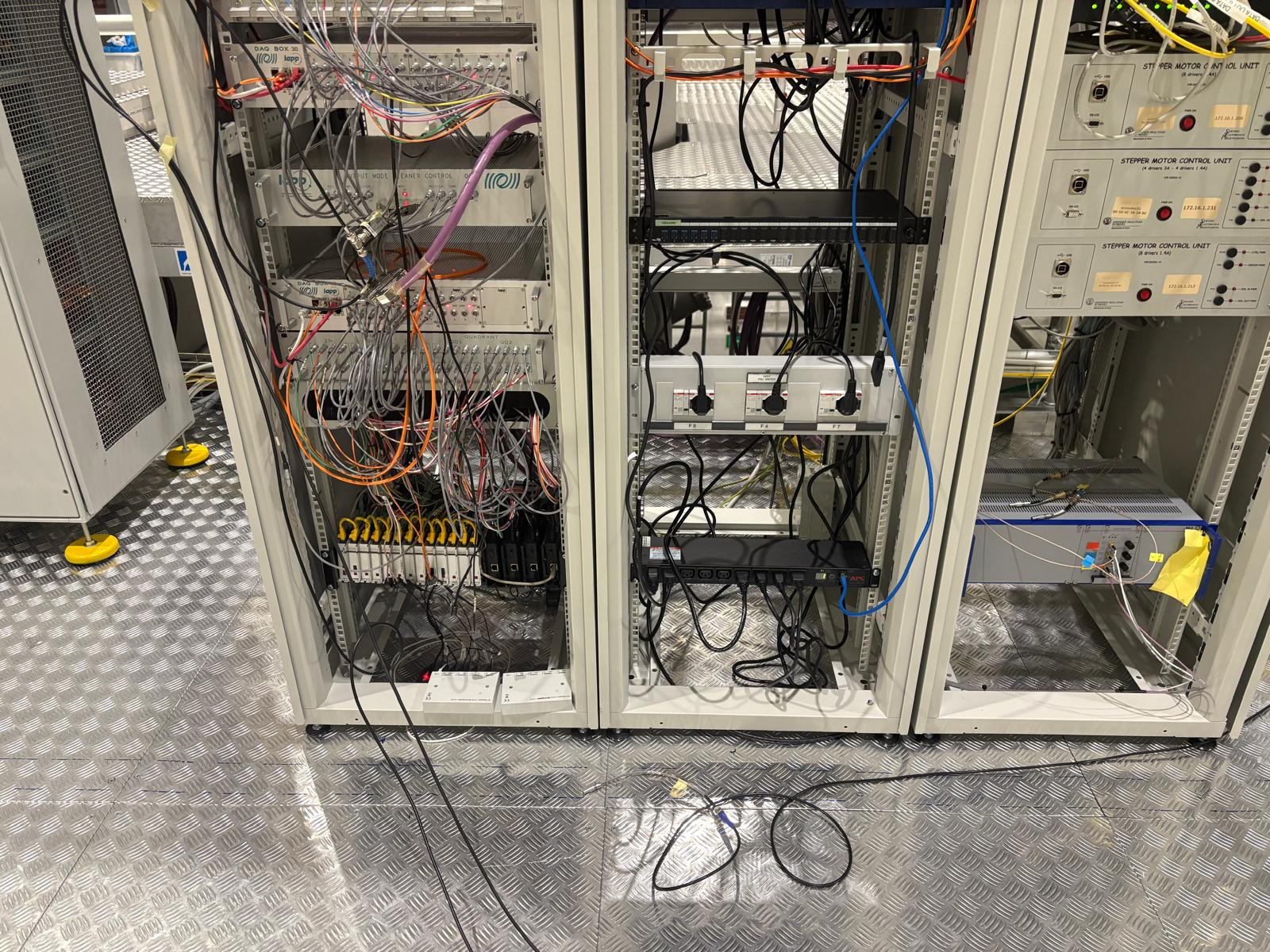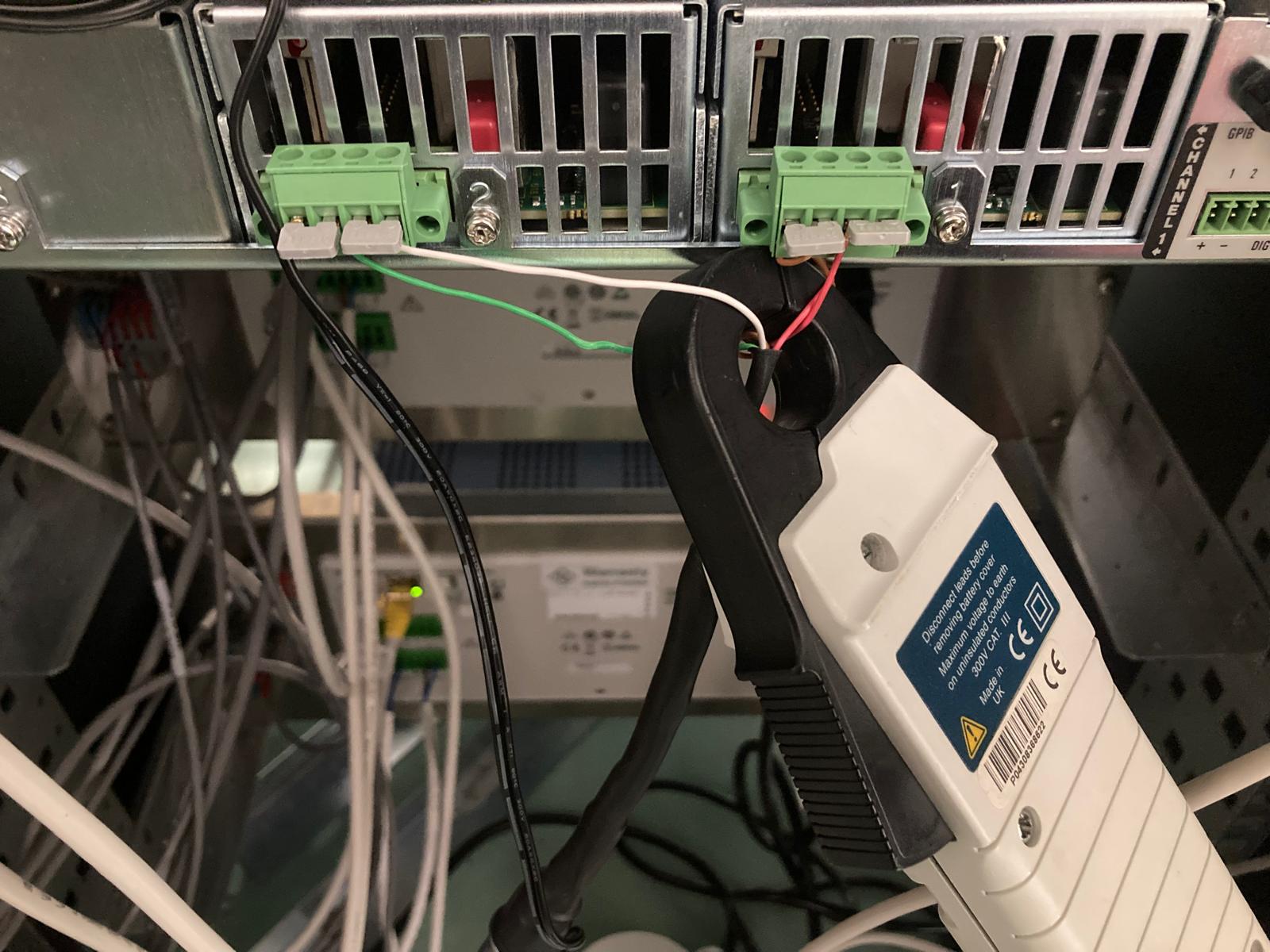 To identify the module corresponding to RH1 — the one showing the unusual current behavior — I temporarily switched it off. It was confirmed that the module is the one on the right side of the first figure (the one with the red wire). Together with Flavio, we decided to leave the clamp ammeter installed to monitor the current during any future instabilities.