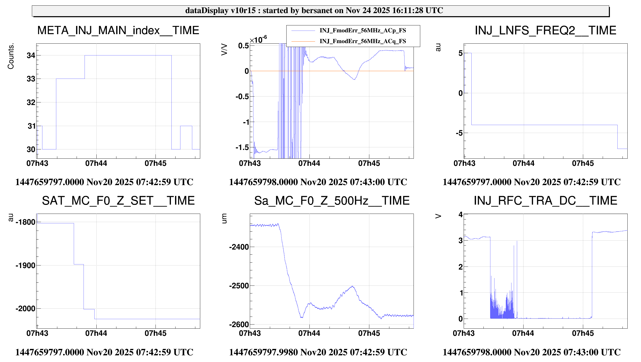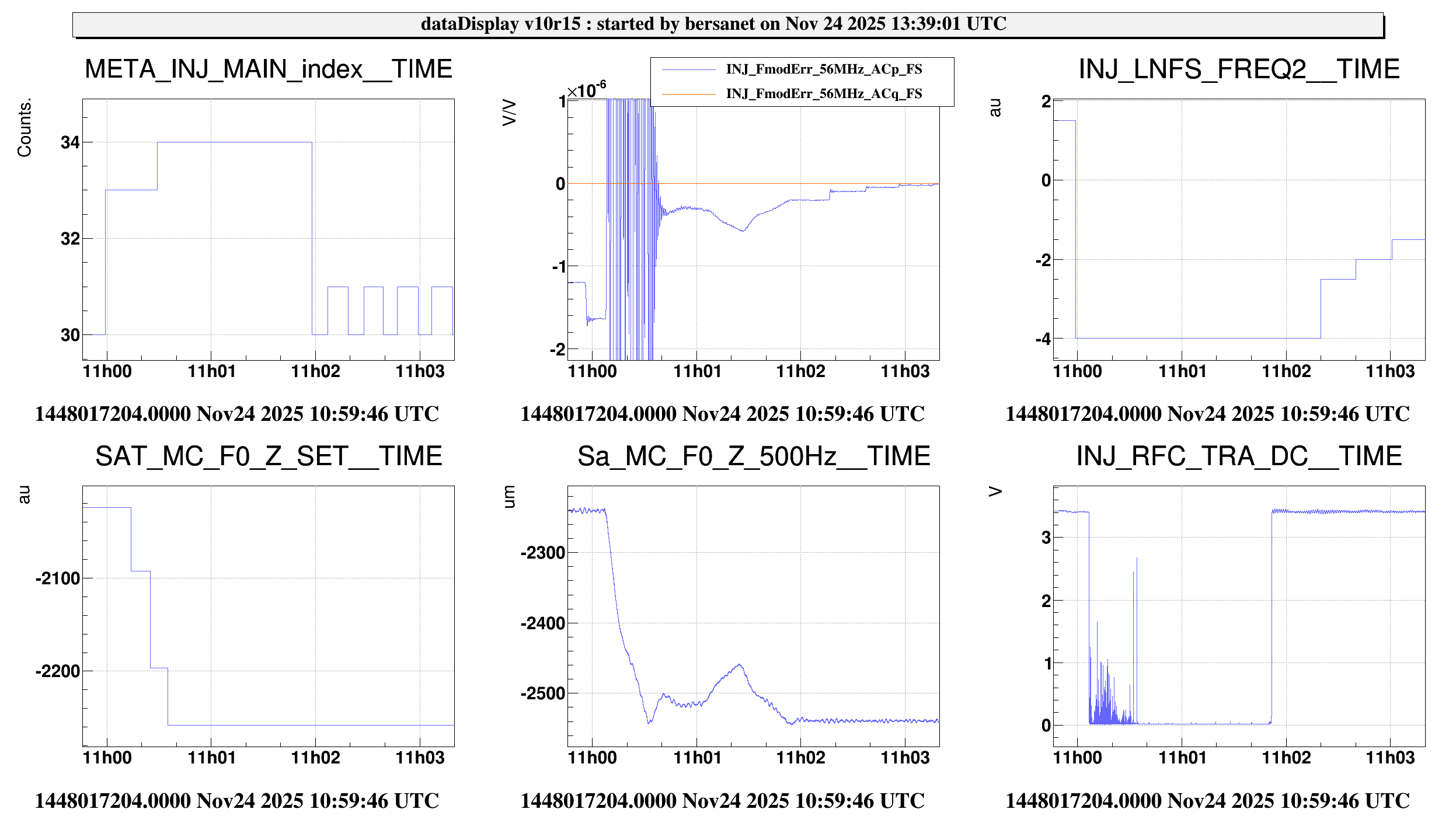 Looking also at the FmodErr tuning this morning (FIgure 2) it can be seen that both calibrations (MC_Z and LNFS) are underestimated, as after each tuning there were additional tunings to perform; this is not dangerous, unlike a big overestimation of the calibration, as in this case the tuning would diverge in a bang-bang correction