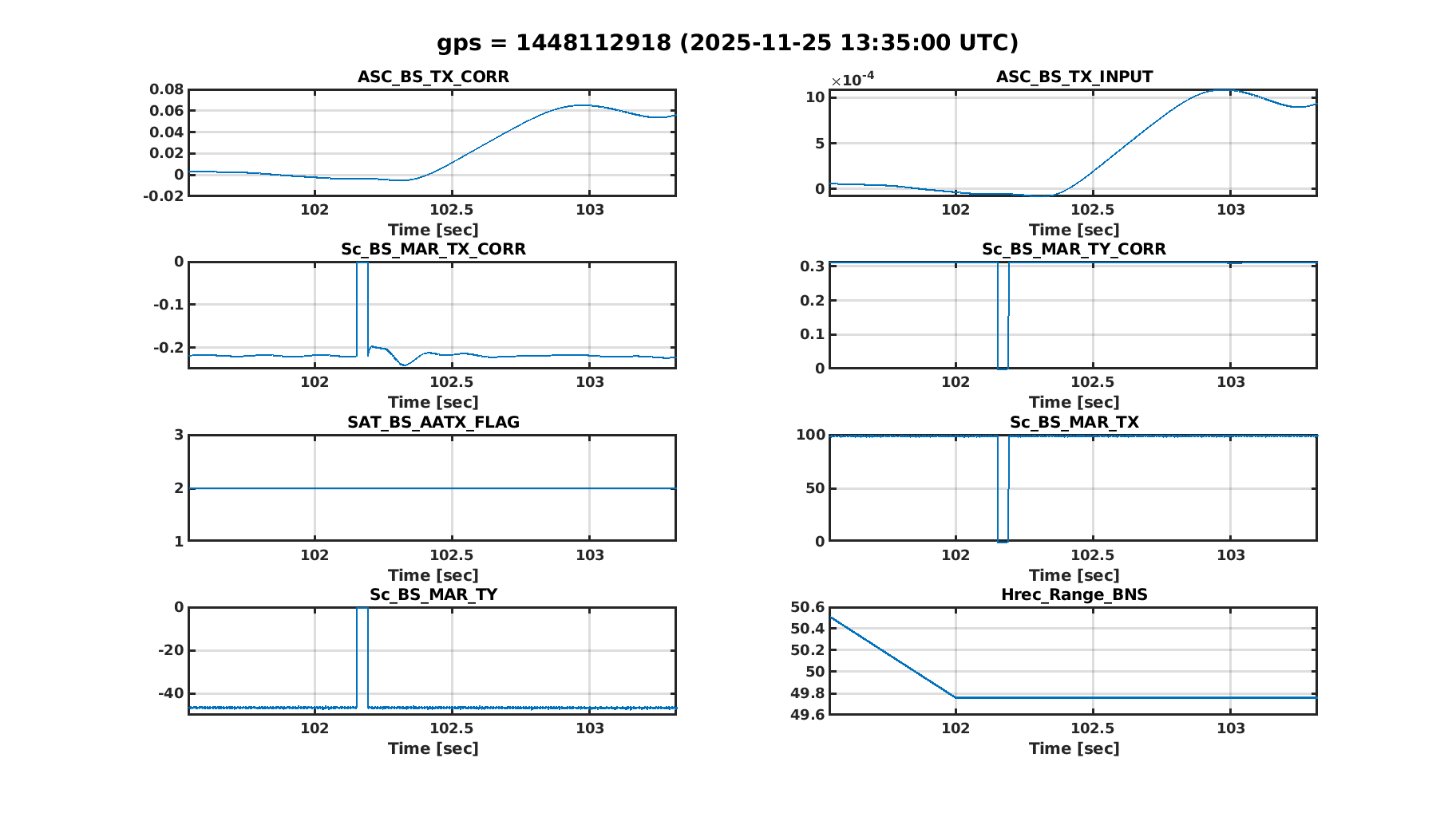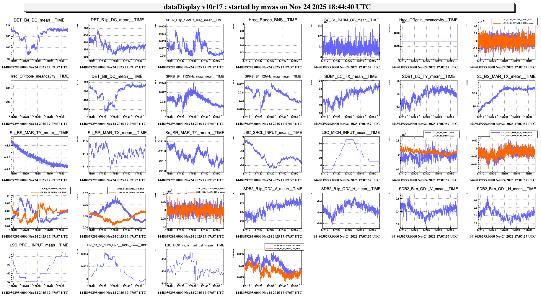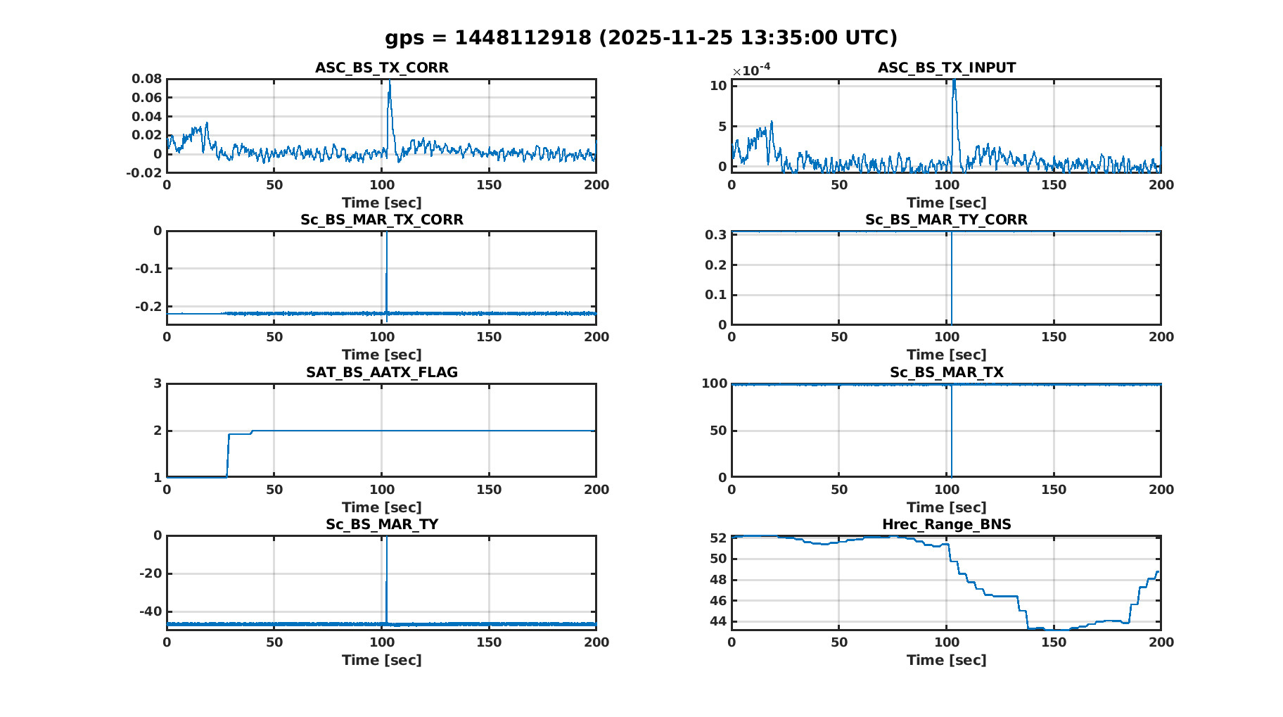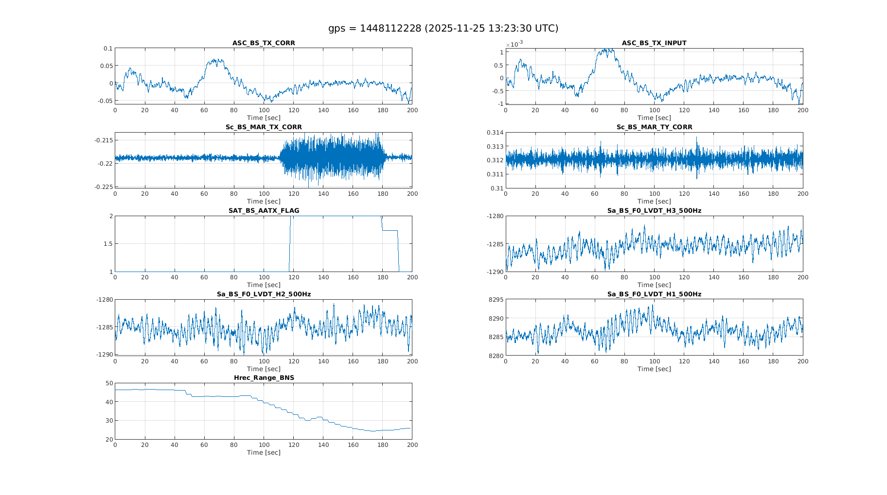 Figure 1. On the night from Saturday to Sunday there were lots of lock losses occuring in the middle of ACQUIRE_LN3. The lock loss monitor reports them as BS TX loop gain to high, and looking at some of the figures there is indeed a BS TX oscillation starting 10-15 seconds before the lock loss. It starts probably when the BS TX loop is put into high bandwidth.