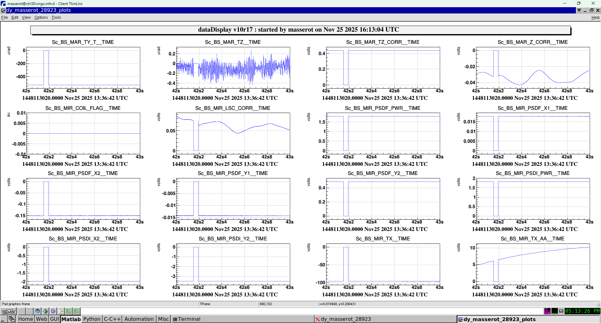 Today, at around 13.42UTC, once in LN3 we moved back the PR_X to reduce BPC corrections. TY corrections reduced as expected, nevertheless they may require an additional PR movement in order to bring them in a safer region.