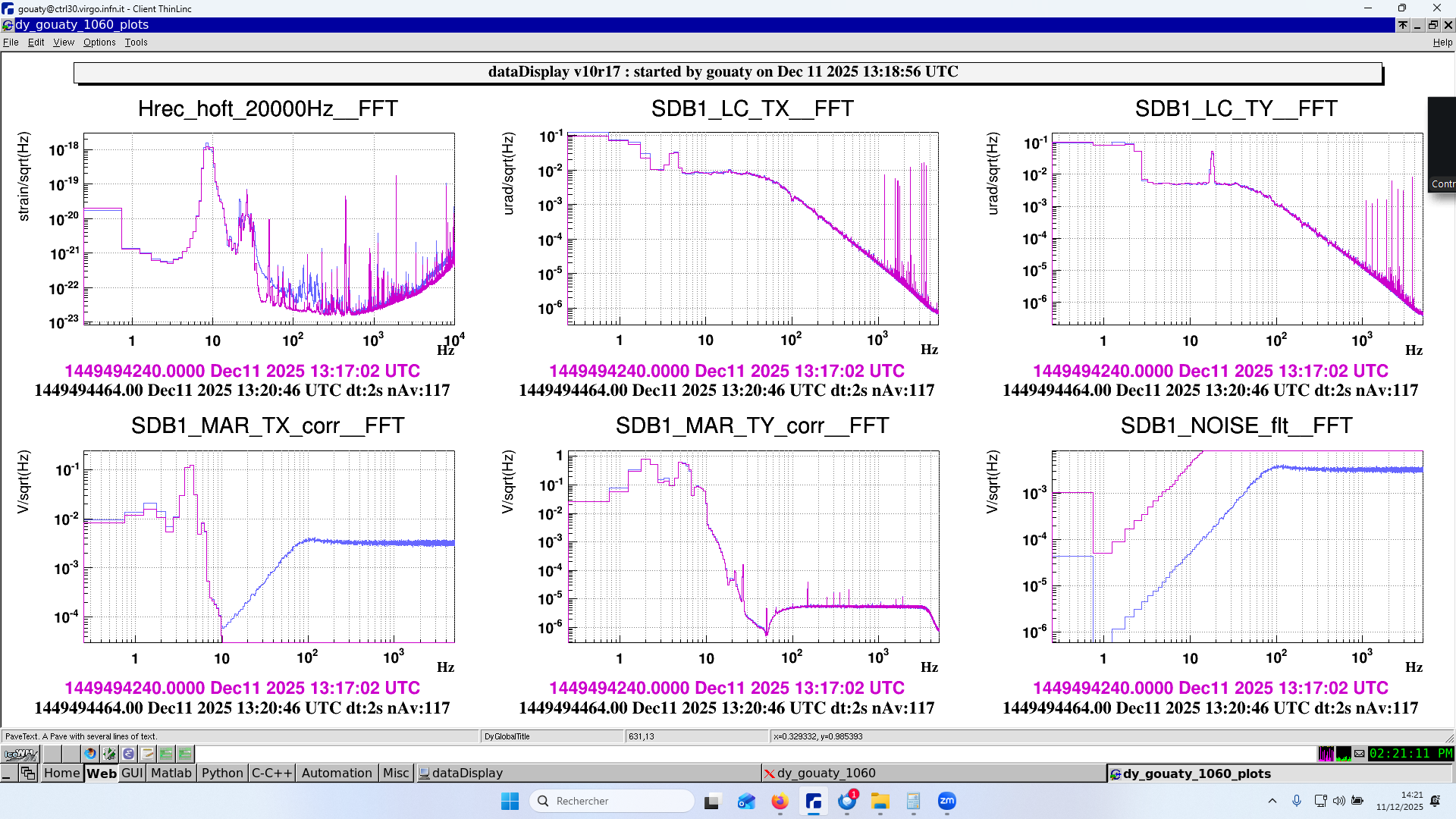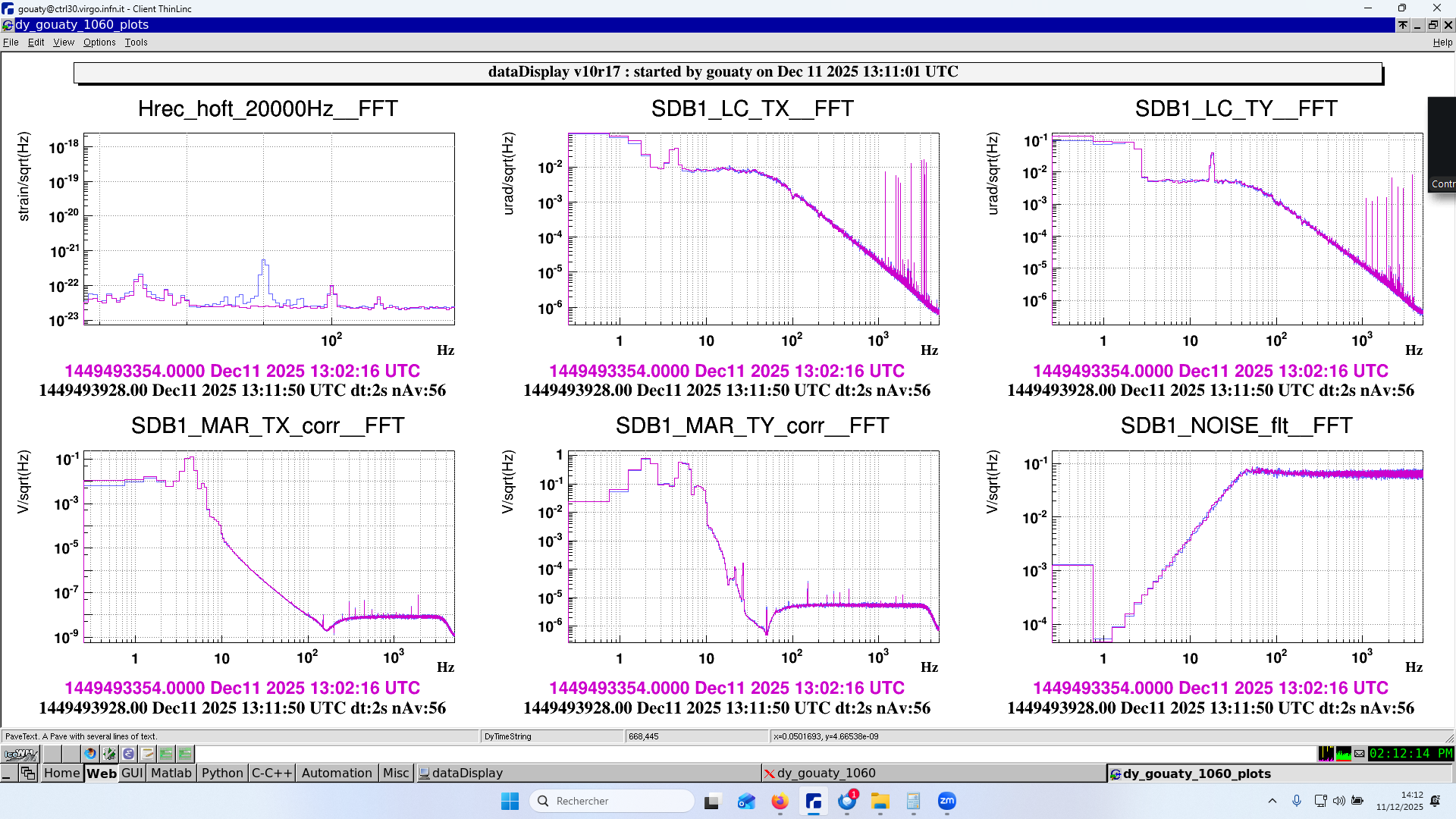 This afternoon, we continued the activity initiated last monday (https://logbook.virgo-gw.eu/virgo/?r=68327) to measure the coupling of angular noise injections on the SDB1 bench marionetta, given different conditions of SDB1 alignment.