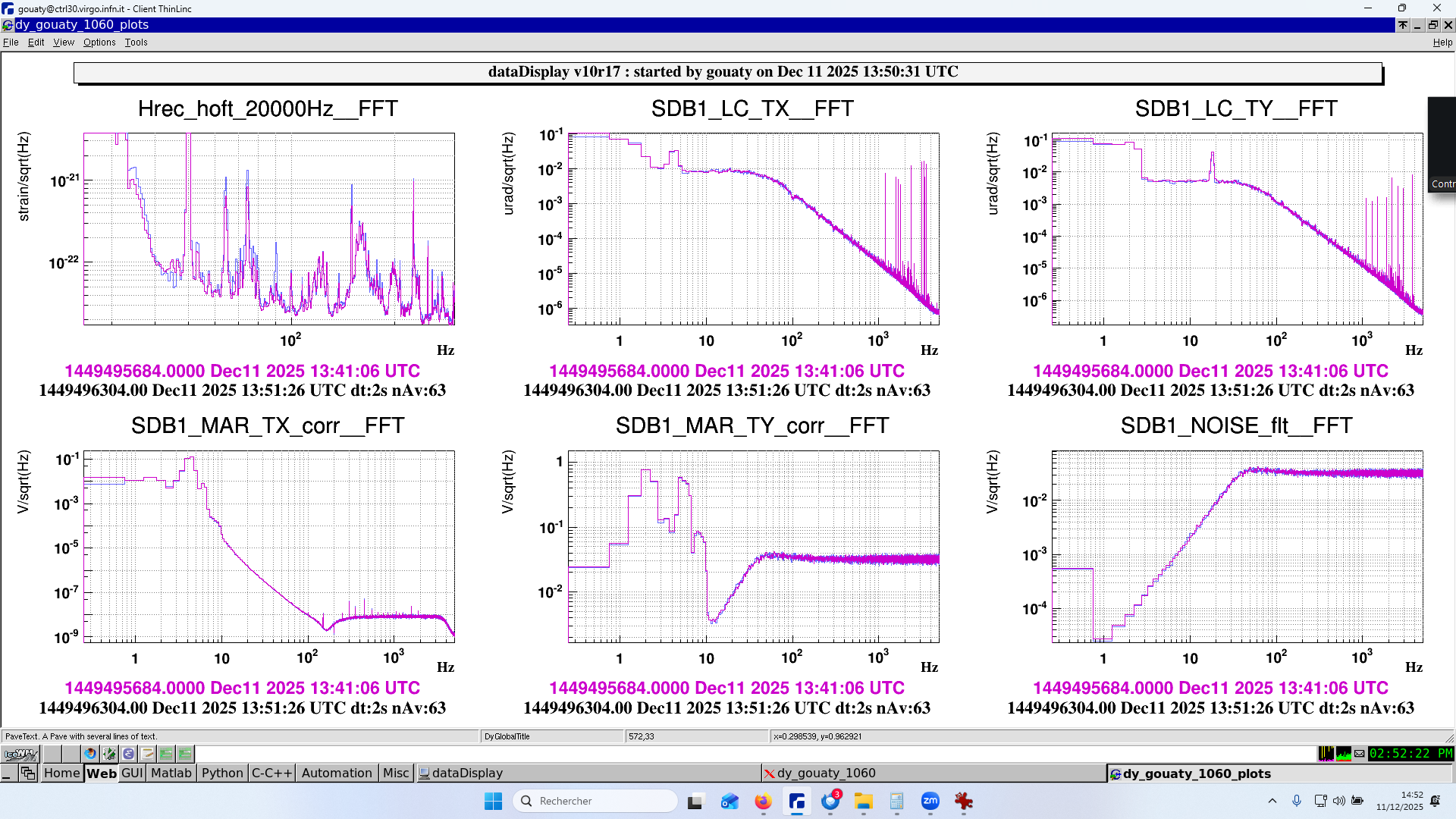 Injecting noise with ampl = 2e-5, pole at 40 Hz, corresponding to 4e-2V/sqrt(Hz) above 40 Hz on SDB1_MAR_TY_corr at 13h39m21 UTC (4 min). FIG.4