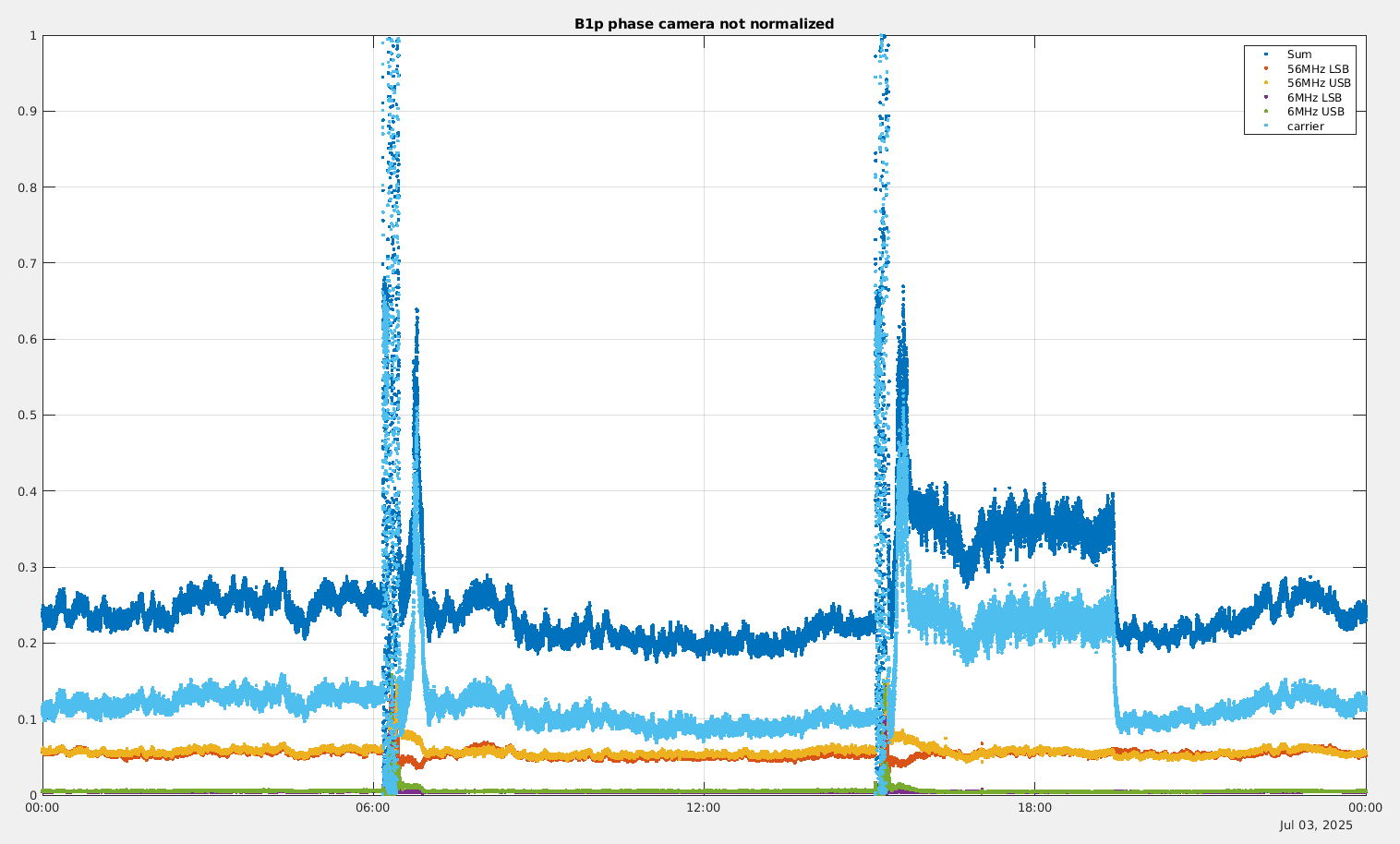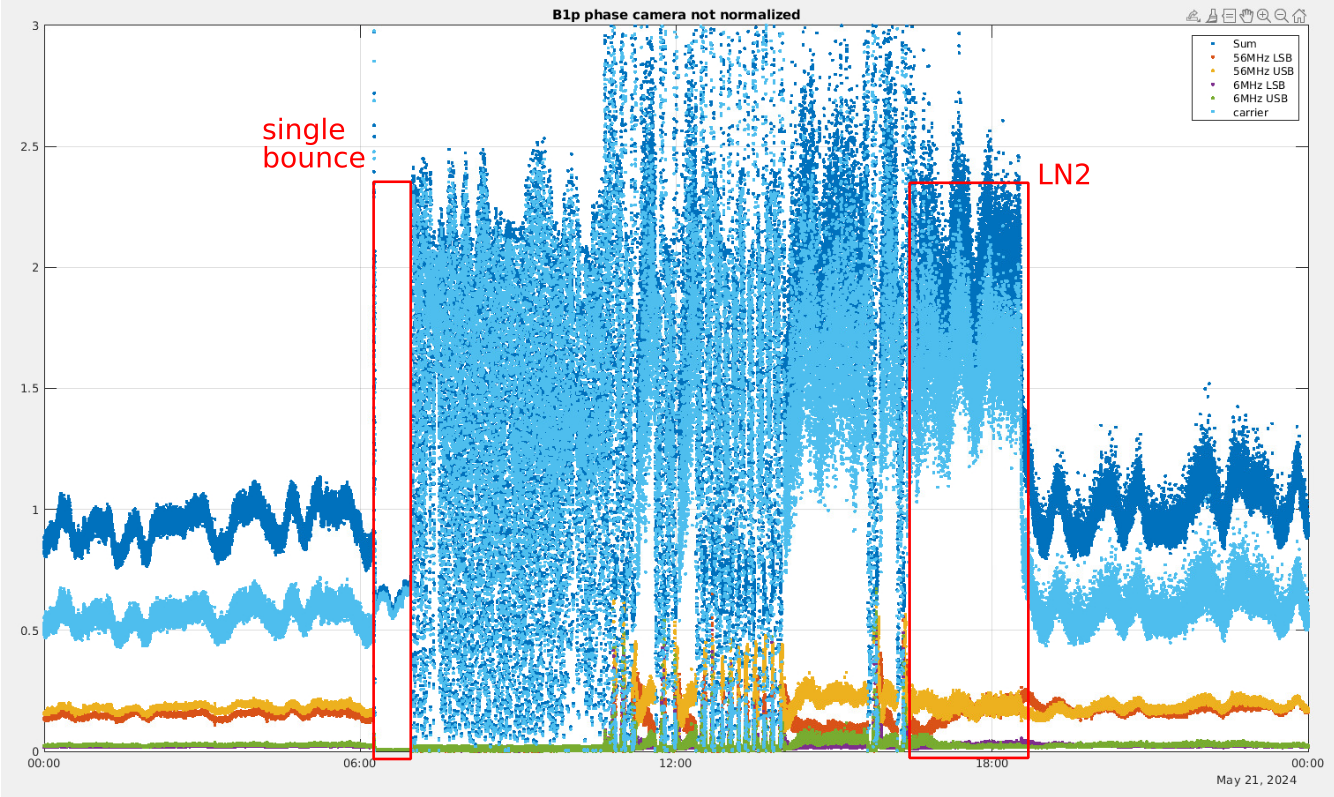 Figure 3 shows data in July 2025, with the PC misaligned, and the interferometer in LN2 around 18:00 UTC. Note that the vertical scale is the same as in figure 1, highlighting there is 5 times less power on the phase camera than there used to be.
