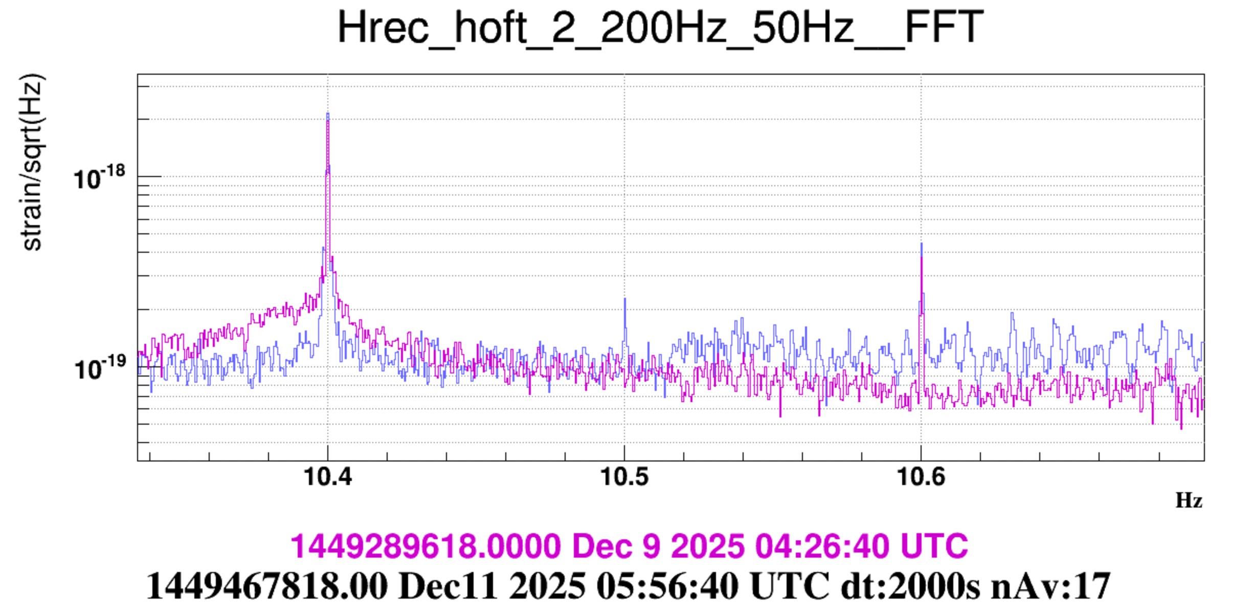 Due to the comb lines spaced by 0.1 Hz, we changed the frequencies of all injected lines and increased the amplitude of the first four lines in order to improve their SNR.
