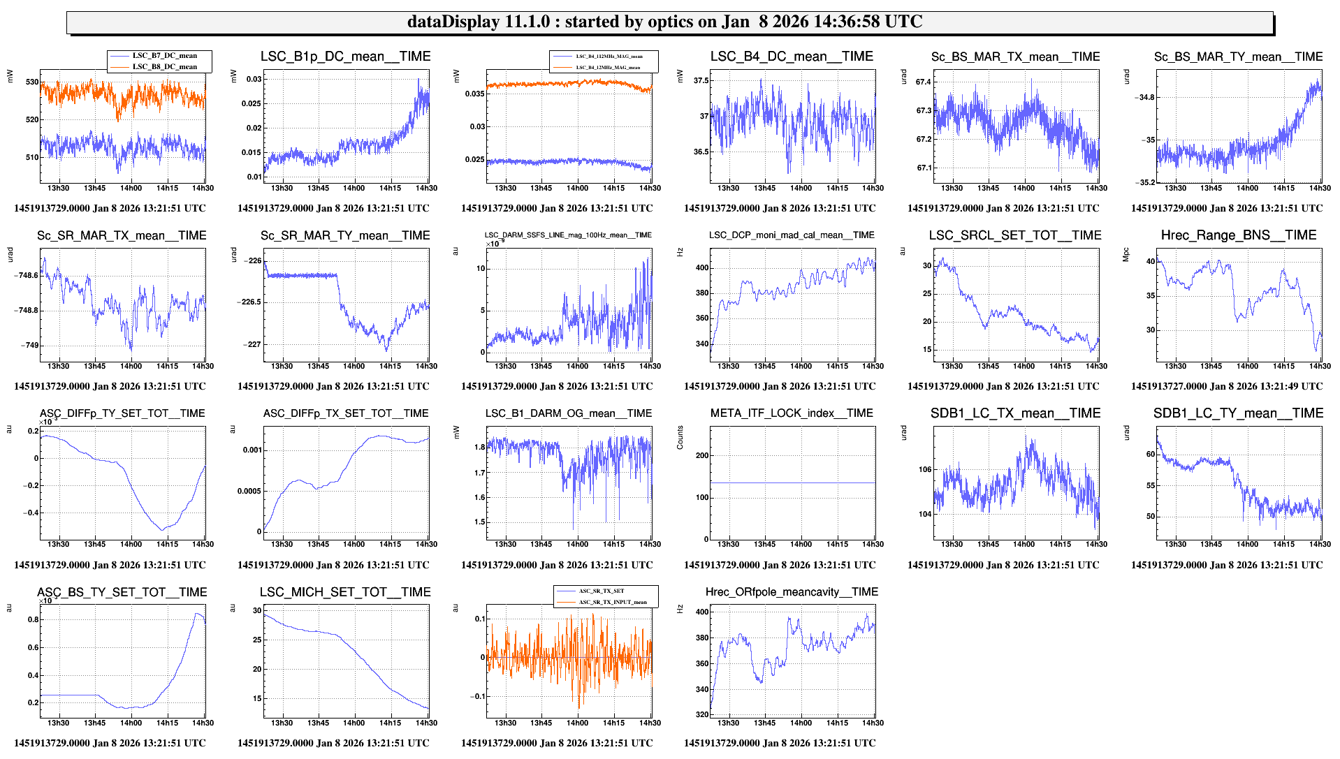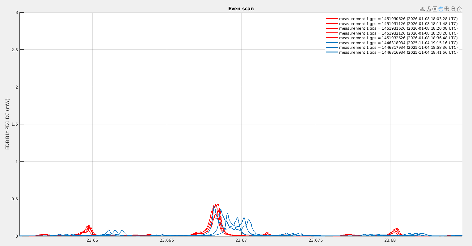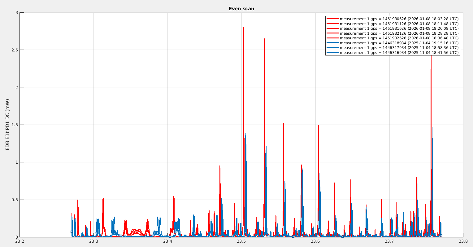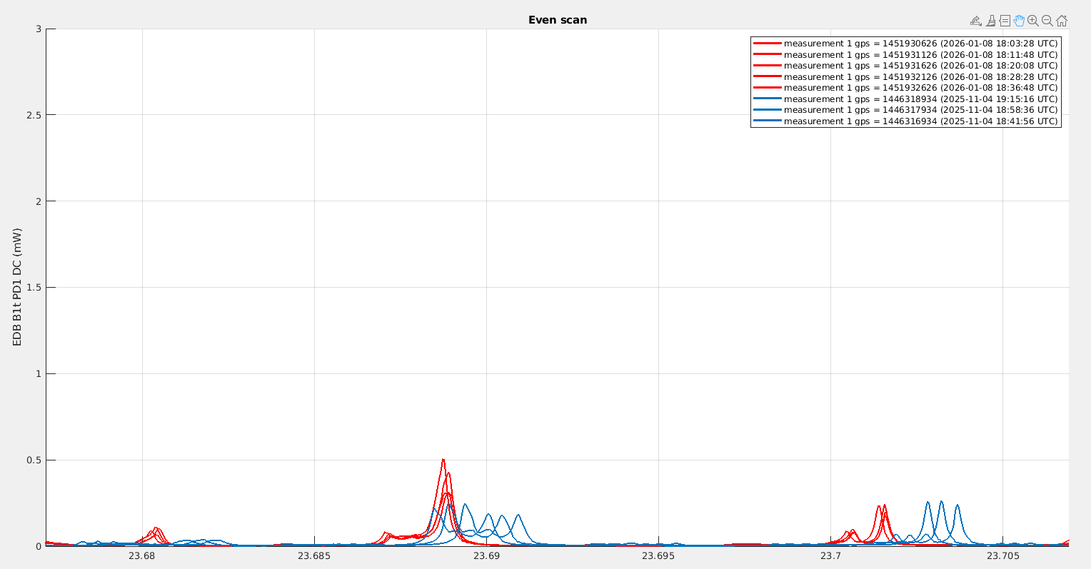 Looking at B1p, the power in November was fluctuating between 340mW and 400mW, while yesterday it was fluctuating between 230mW and 280mW. It is very confusing that the change we observe on B1p is in the opposite direction to the change in power we observe on B1s.