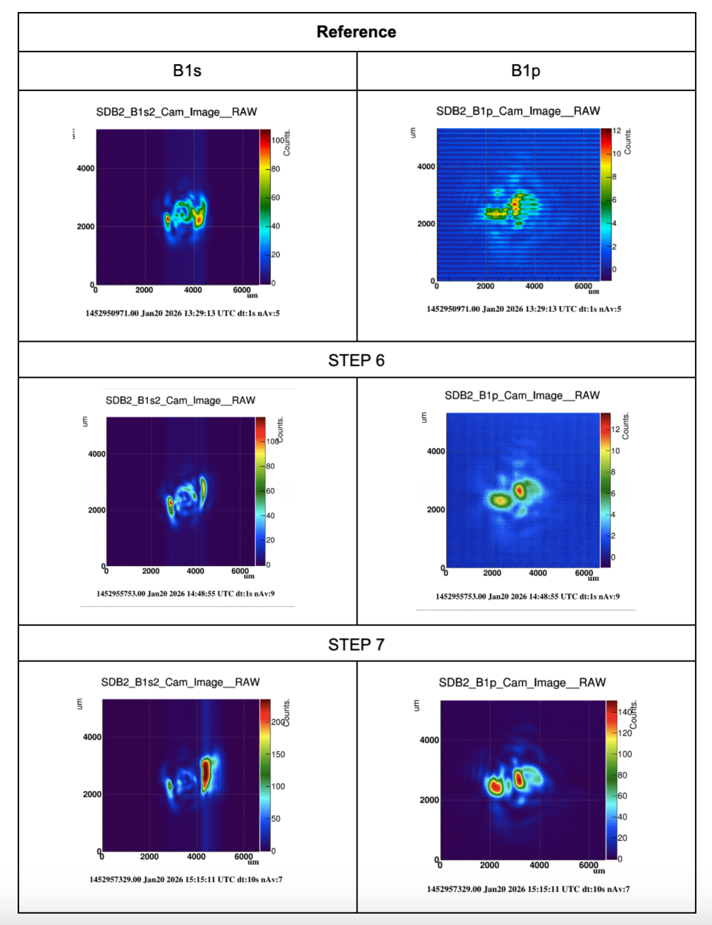 Since the SBs decrease seemed to be correlated with STEP 2, we tried to revert the action on N arm with STEP 4 (NI Outer ring -20%). B1p and B1s remain untouched, while SBs and BNS range get better and then worse.