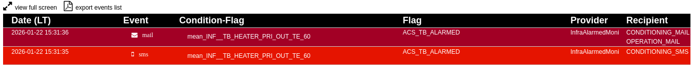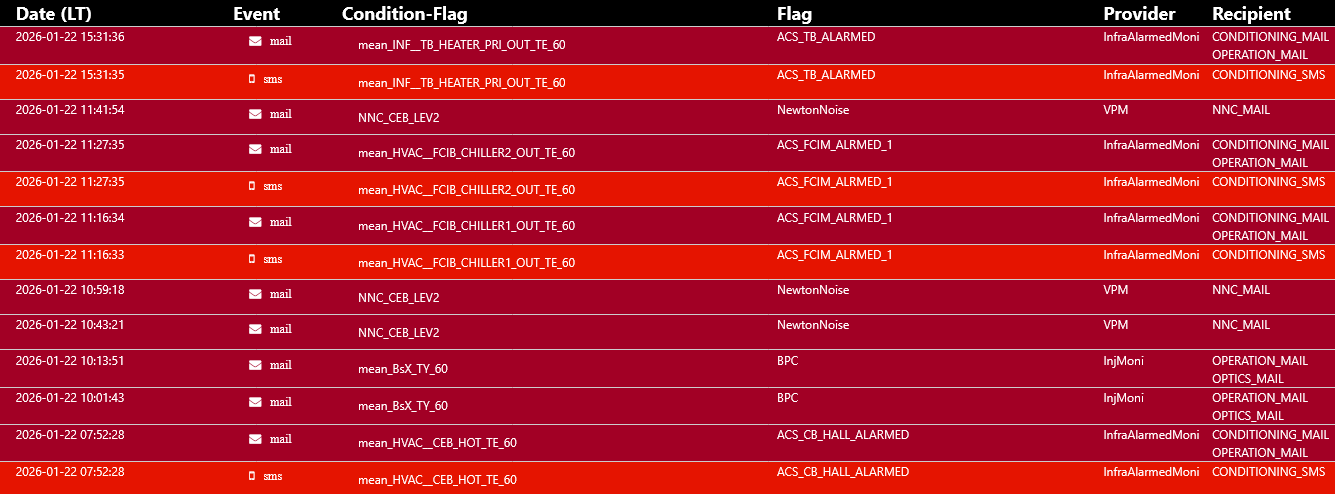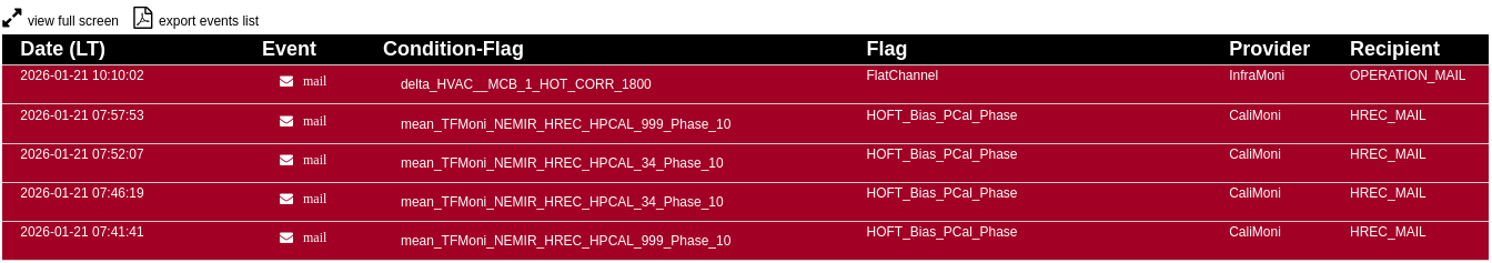 | | Last nominal configuration (21/01/26, 20 UTC) | CH [W] | INNER DAS [W] | OUTER DAS [W] |