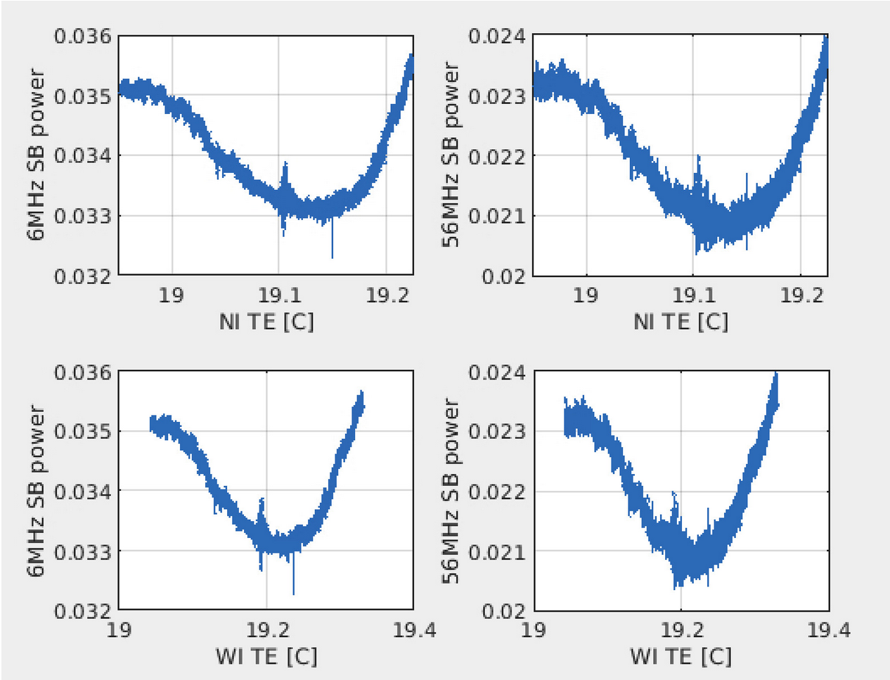 After around 1h and half we noticed that all the figures of merit almost reset the values to the one of this morning, except for SBs: after some investigations, Maddalena noticed that it could be related to Etalon loops (see Figure 1: behaviour of SBs level VS WI/NI temperatures from monday, as reference; the SBs level minima are reached, at different moments, between 10 and 14 UTC in the past days).