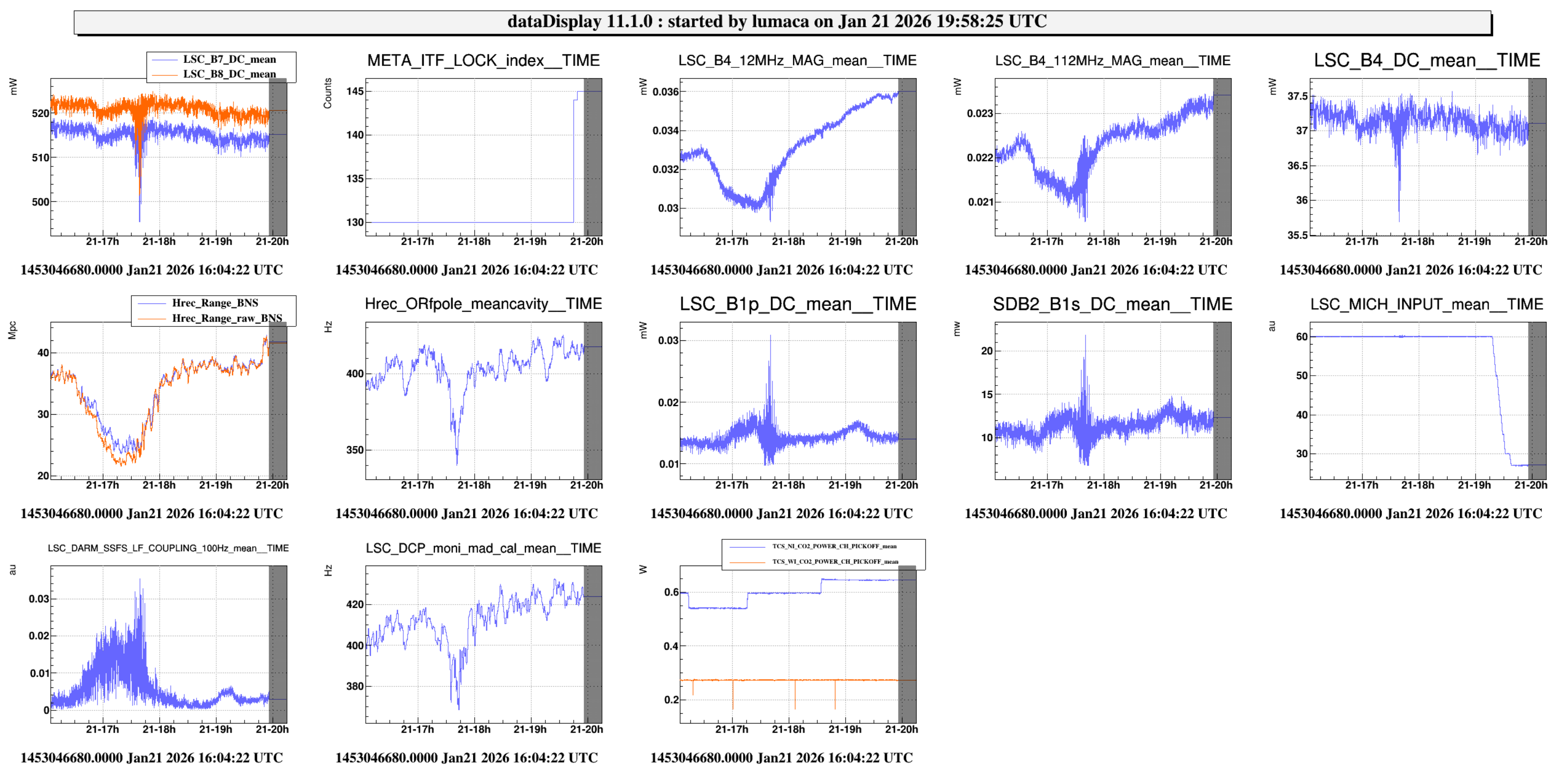 Michal noticed that the MICH control loop was not working properly and corrected it manually just before letting the ITF go in LN3_ALIGNED (locked in this state at 19.50 UTC), in order to start the ENV low-noise injections.
