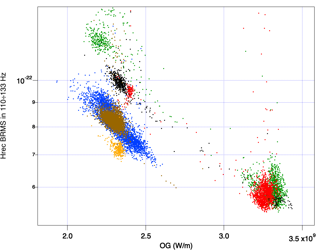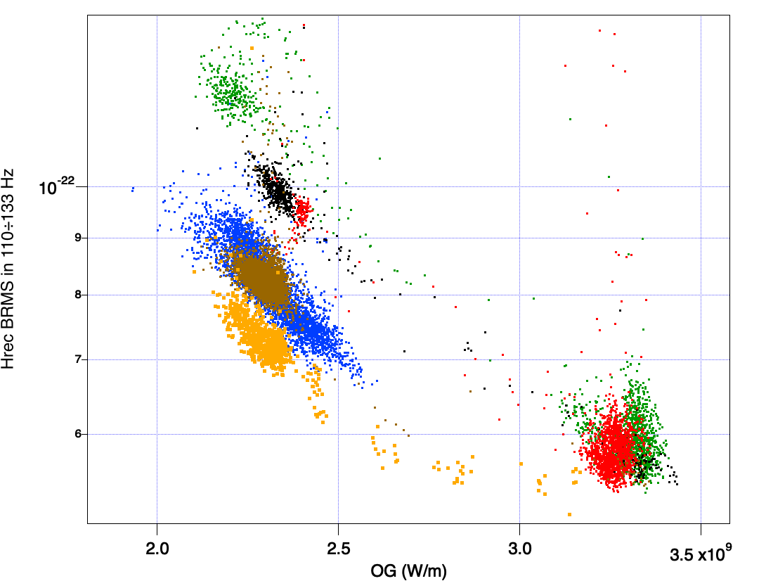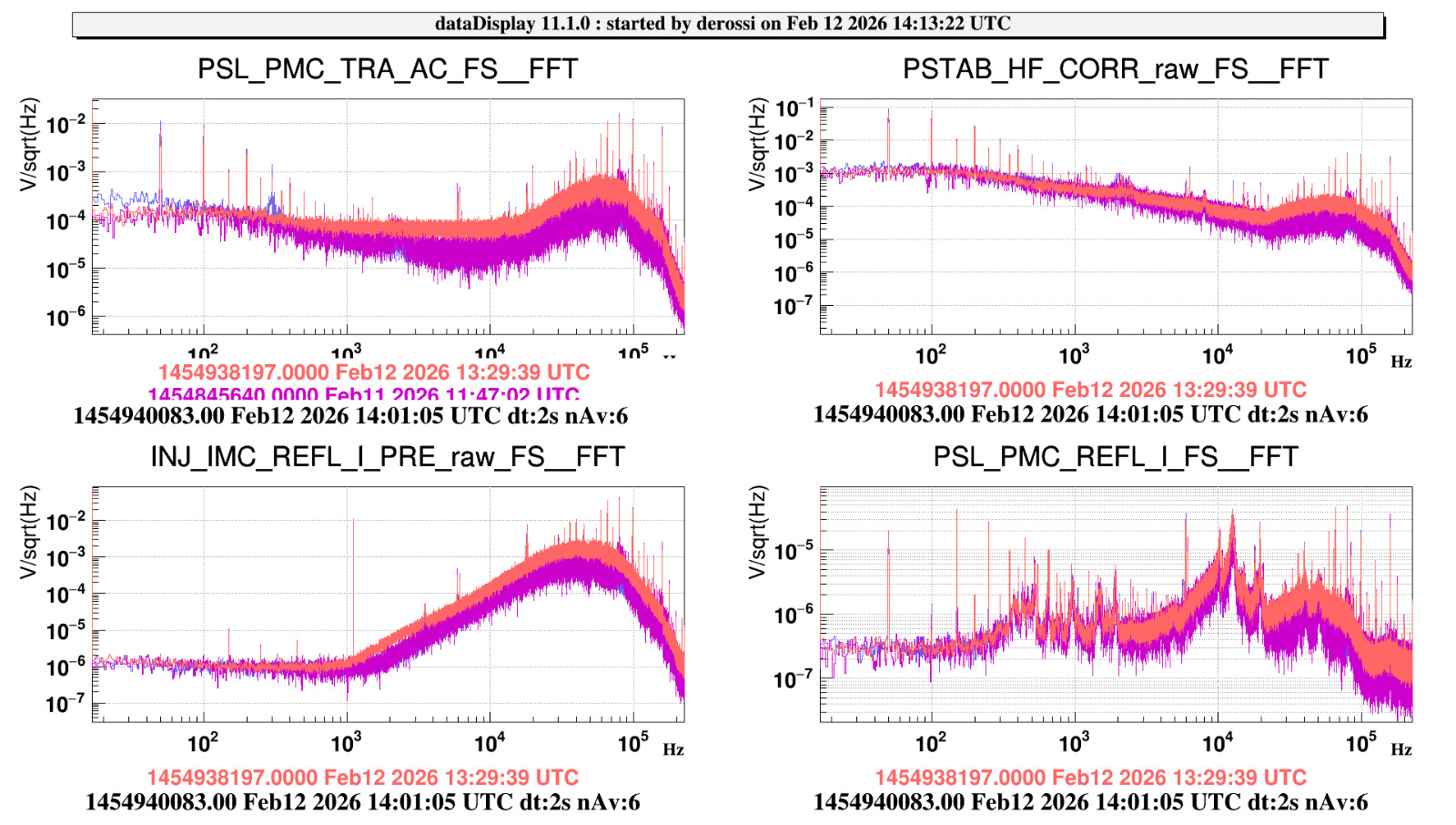 - yellow curve: the ground motion provided by the reconstructed F0 accelerometer described above. The compensation of the mechanics is good enough, even if not perfect. A remarcable difference between the seismometer and the SUSP accelerometer is visible below 0.1 Hz: SUSP ACC is a very heavy and soft accelerometer, perfect for having a very low noise at low frequency.