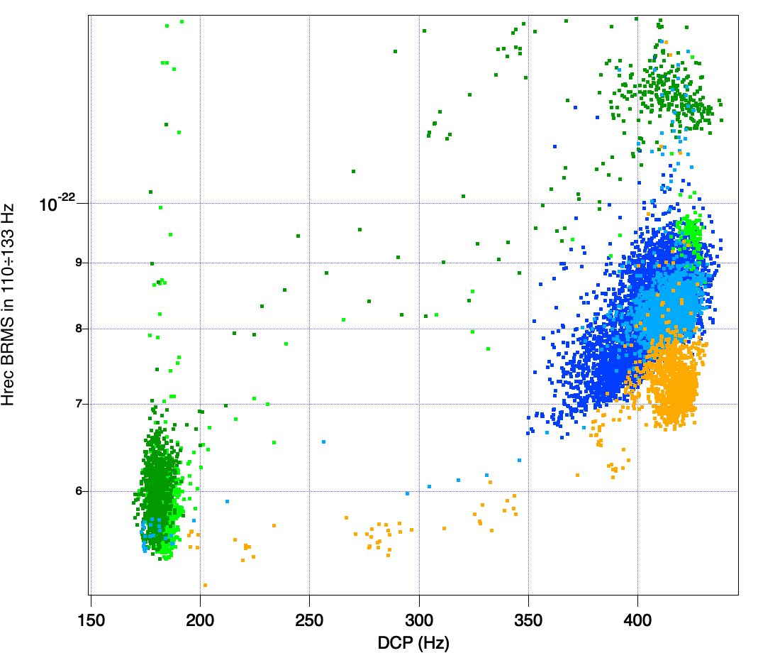 - black points: BRMS Hrec noise in 110÷133 Hz
