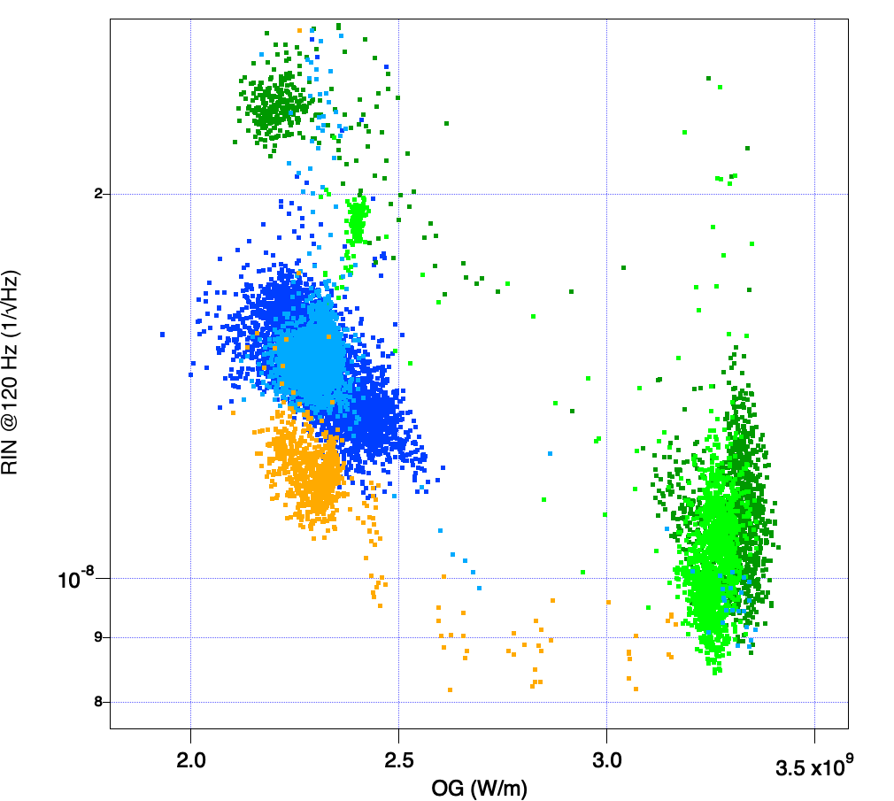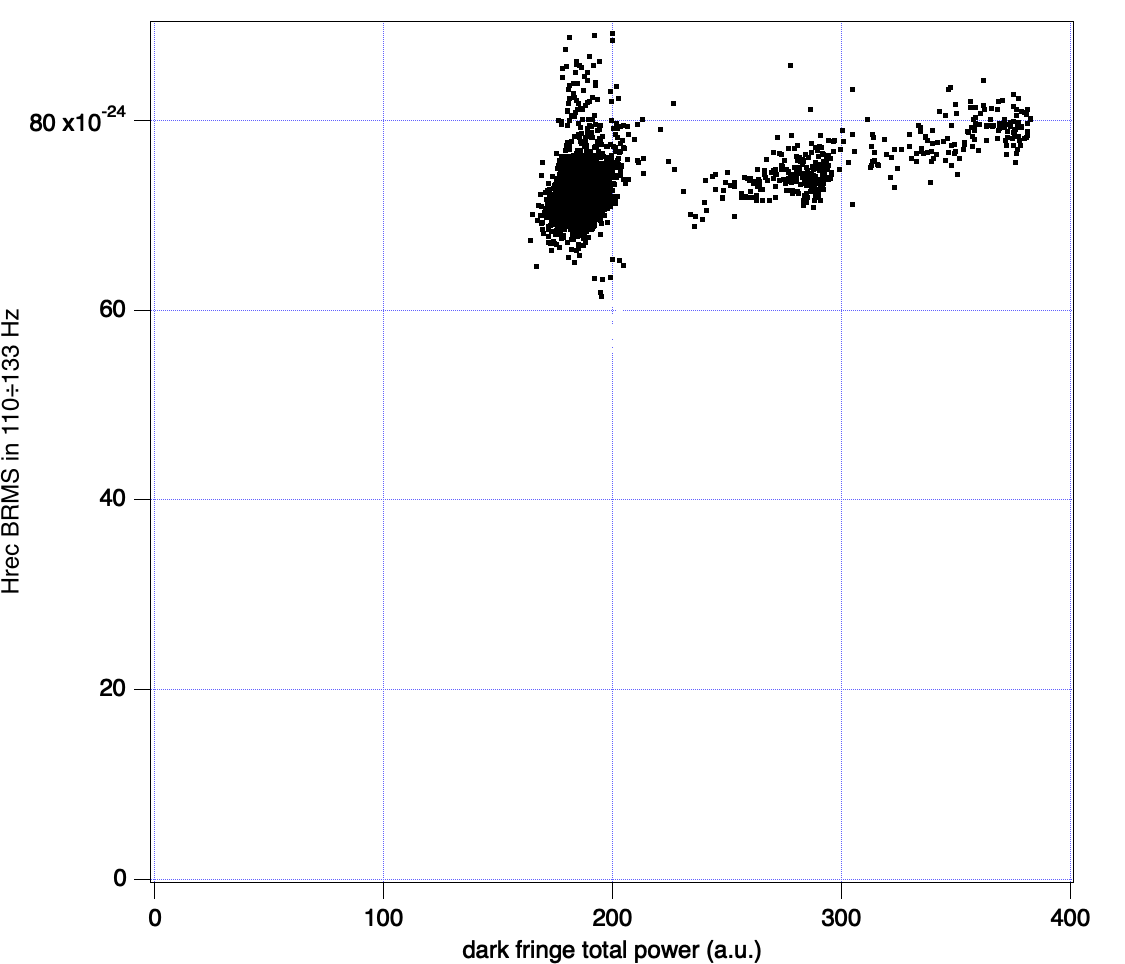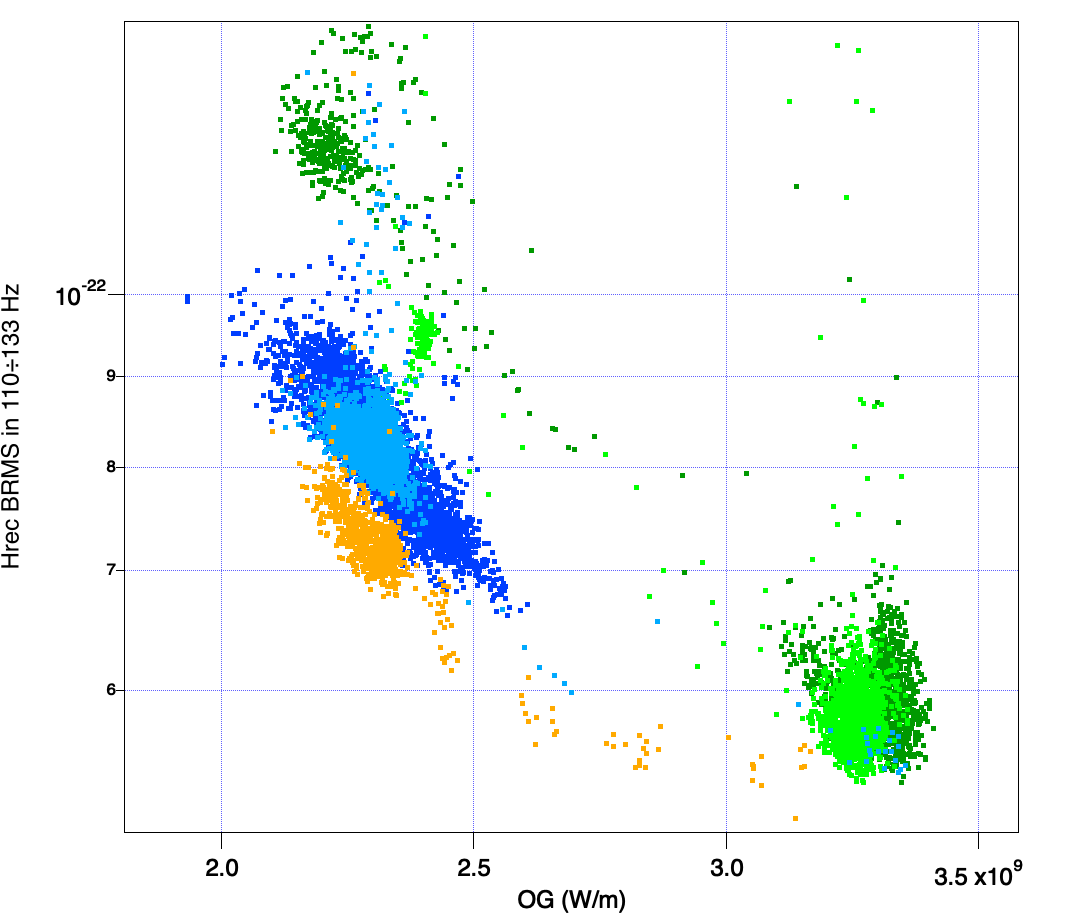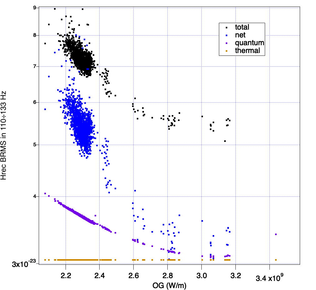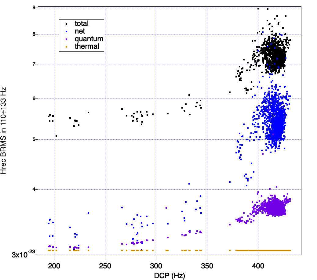 - purple points: BRMS quantum noise in 110÷133 Hz