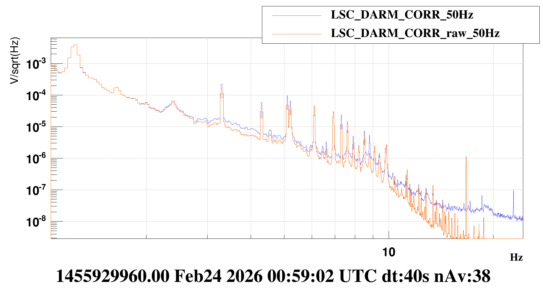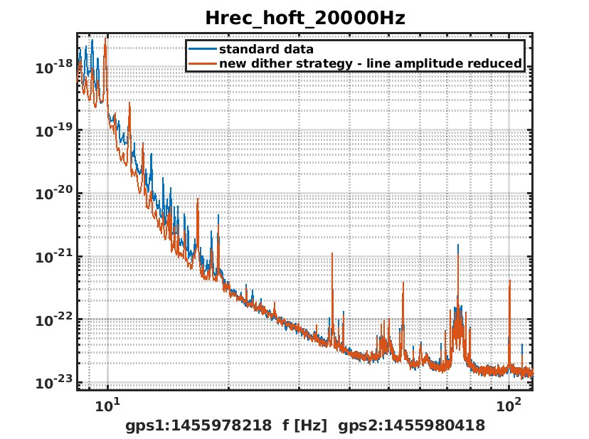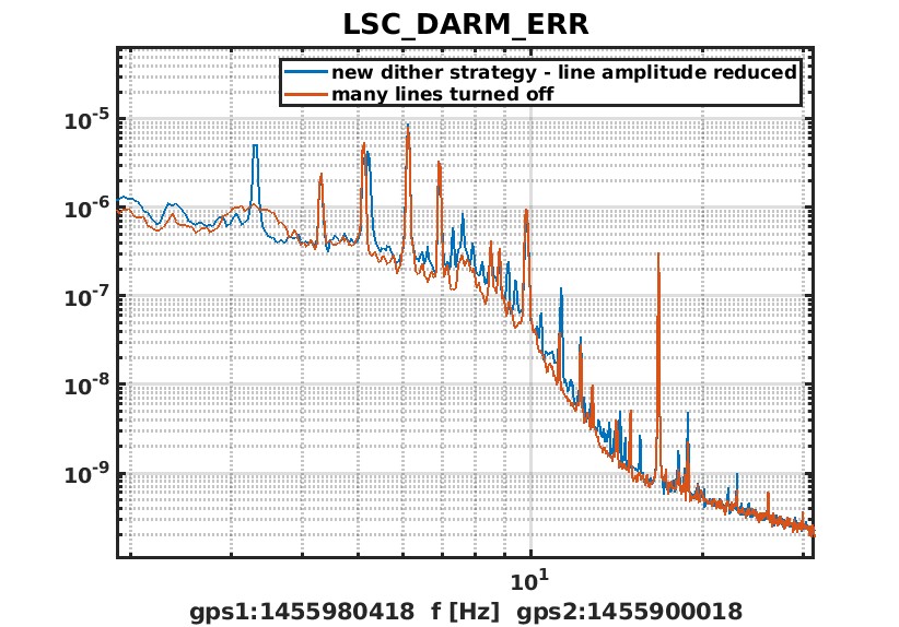 We also can notice that the level of noise above 20 Hz, dominated by a mystery 1/f^4, did not change at all reducing the noise coming from the lines.