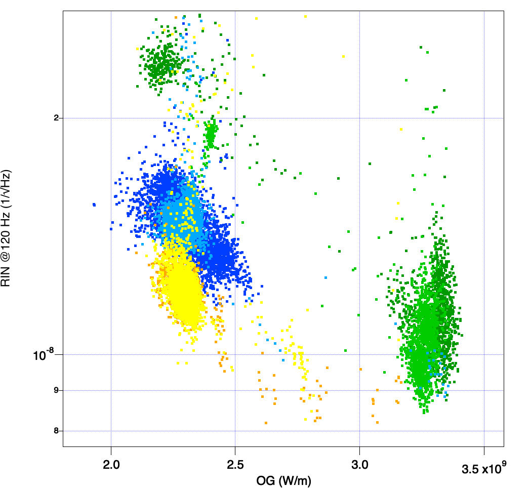 - brown points: BRMS thermal noise in 110÷133 Hz