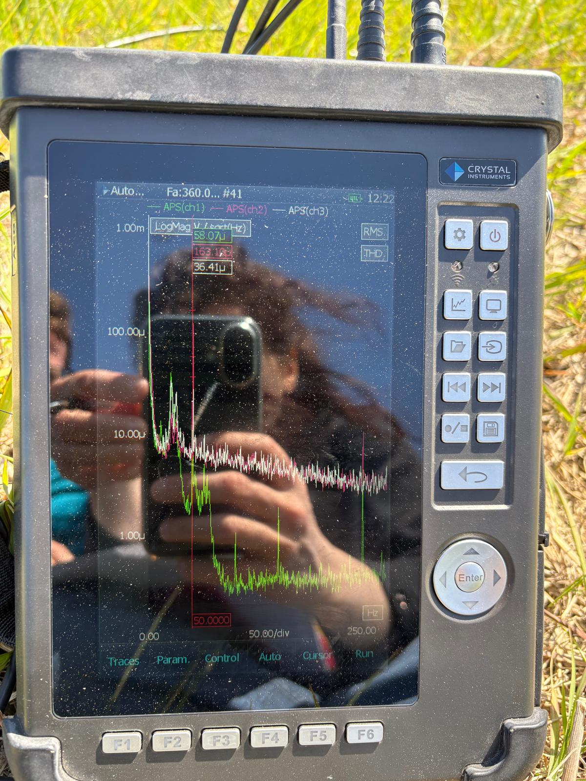 Below, we report the spectral amplitudes of the main power-related lines at 50 Hz and its harmonics (150 Hz and 250 Hz). The values have been converted into magnetic field units using the sensor calibration factor, corresponding to 1 μV = 0.01 nT.