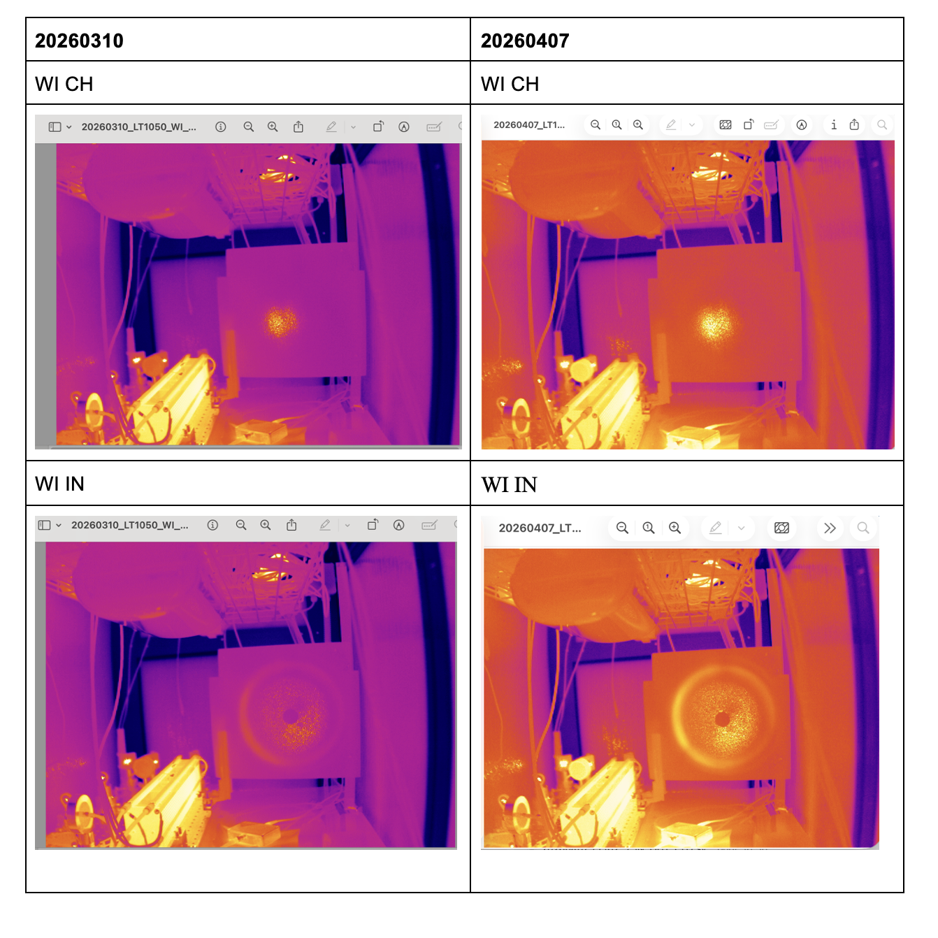 This afternoon, a few hours after the restart of all CO2 lasers, thermal camera images of both CO2 benches were acquired in order to check the shape and position of the DAS rings/CH for both WI and NI.