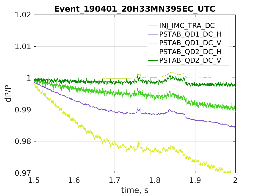 The plot shows the PSTAB Quadrant error signals normalized by their DC value. The time zoom refers to the event visible in subplot 221 of entry 45807 .