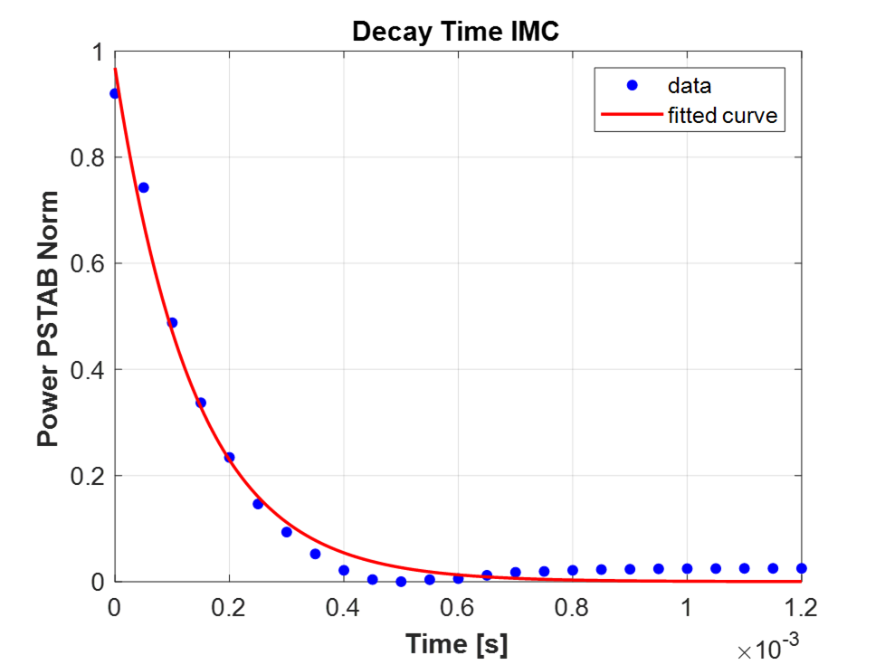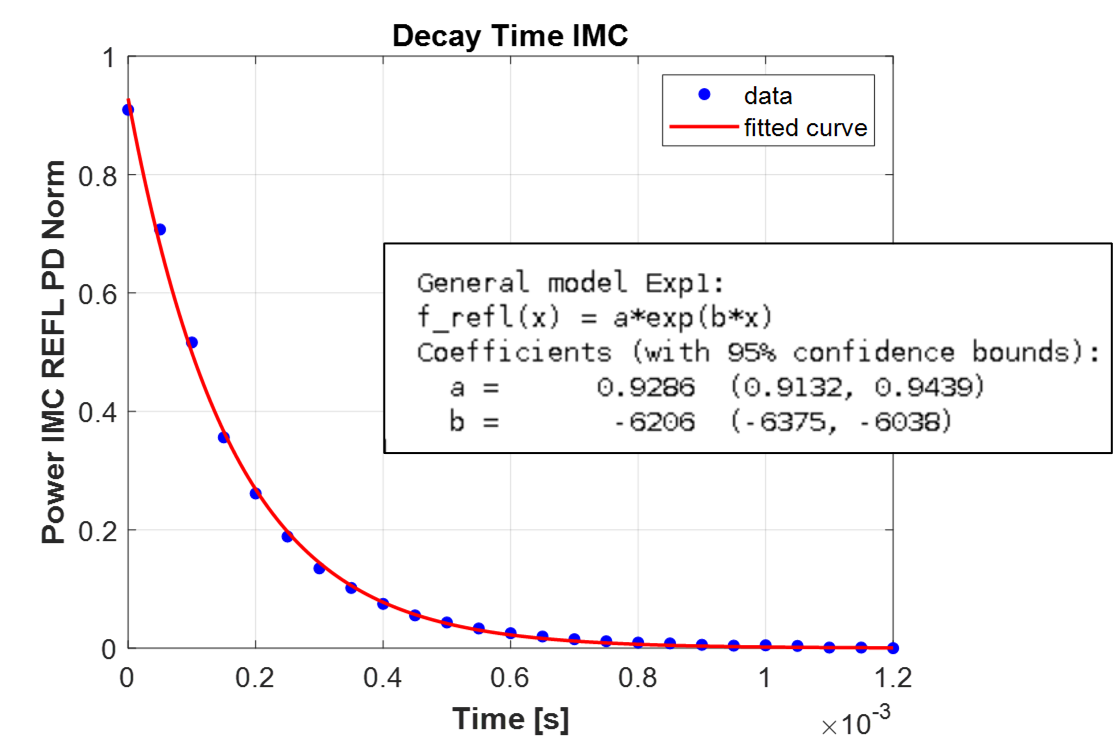 INJ_IMC_REFL was our choice this time, even if it was not possible to obtain a good fit with most of the measurements as well, as the data was not very "clean" (from a set of 6 measurements, just one measurement was analyzed, the other 5 could not be fitted well). We were able to have a good fit only with one measure, which gave us the following result (Fig. 3):