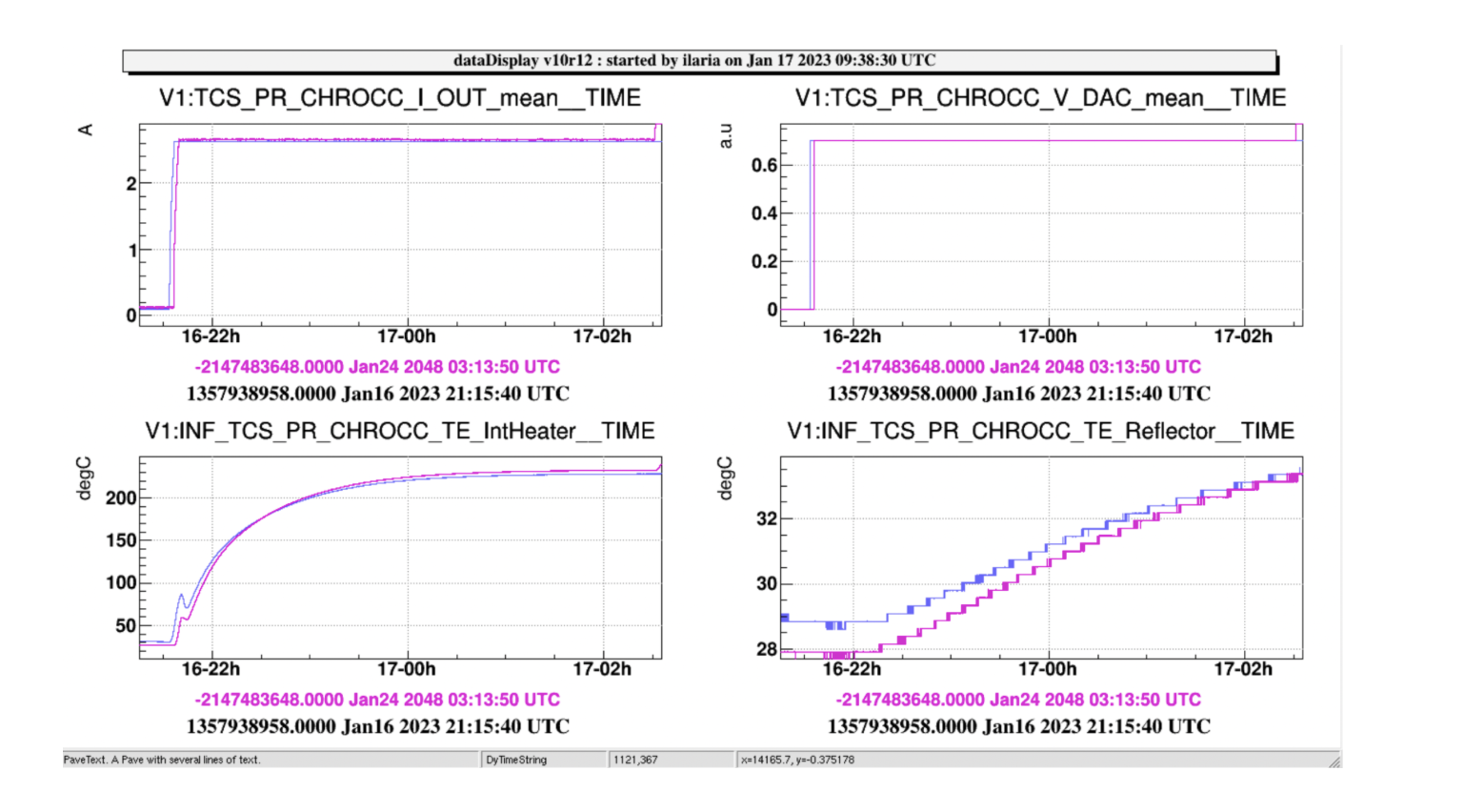 The temperature behaviours (heater and reflector) during the two different measurements are compared in fig. 3.