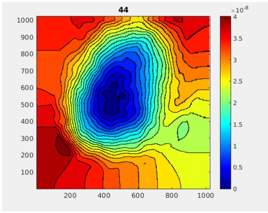 The PA appeared immediately in the HWS map (fig.1) and the coordinates of the YAG have been evaluated considering the WFs from 100 to 173 (see table below). An example of the YAG OPL in the HWS-DET map, after removing the PA, is shown in fig.2.