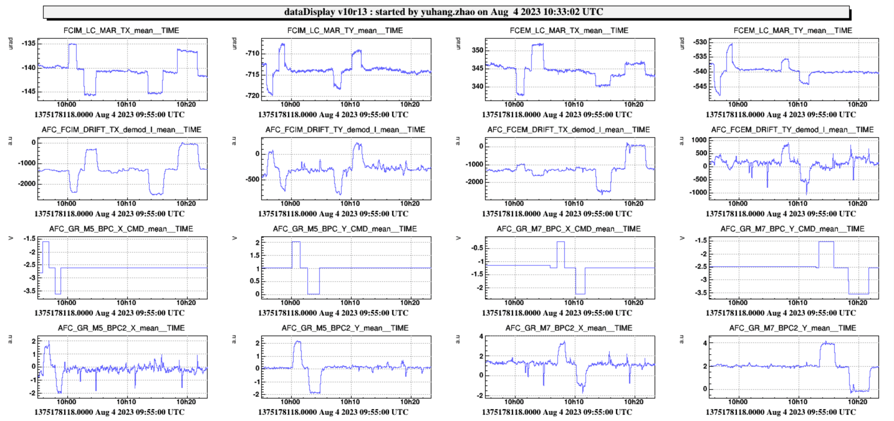 Note that during this work, we found that there was an offset in the BPC2 loop. After confirming with Yuefan, we realize that this offset in the BPC2 loop is set to have the desirable beam position when we use the PSD in the transmission of the filter cavity. However, since we are not using PSD anymore, this offset we are using doesn't make sense for the alignment control.