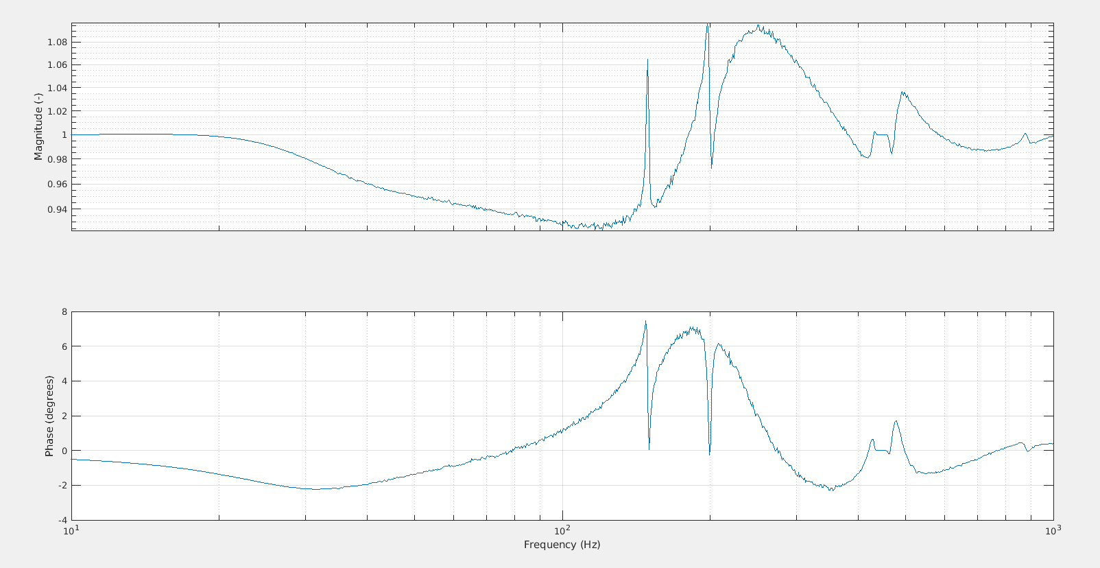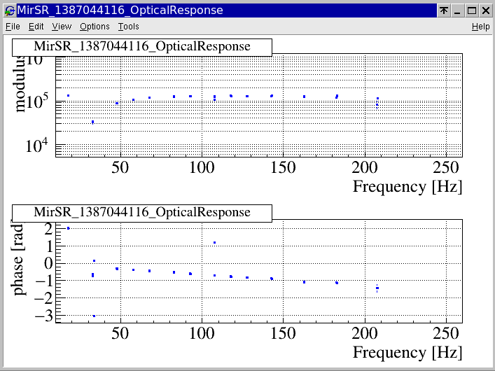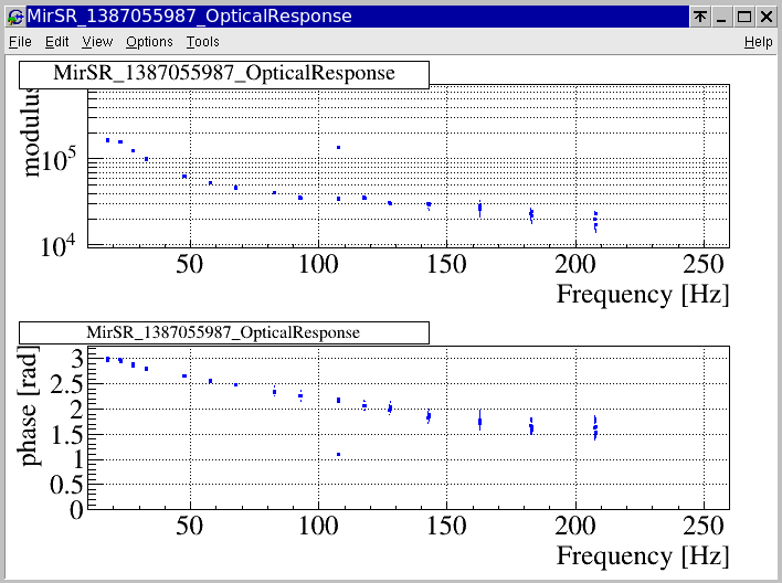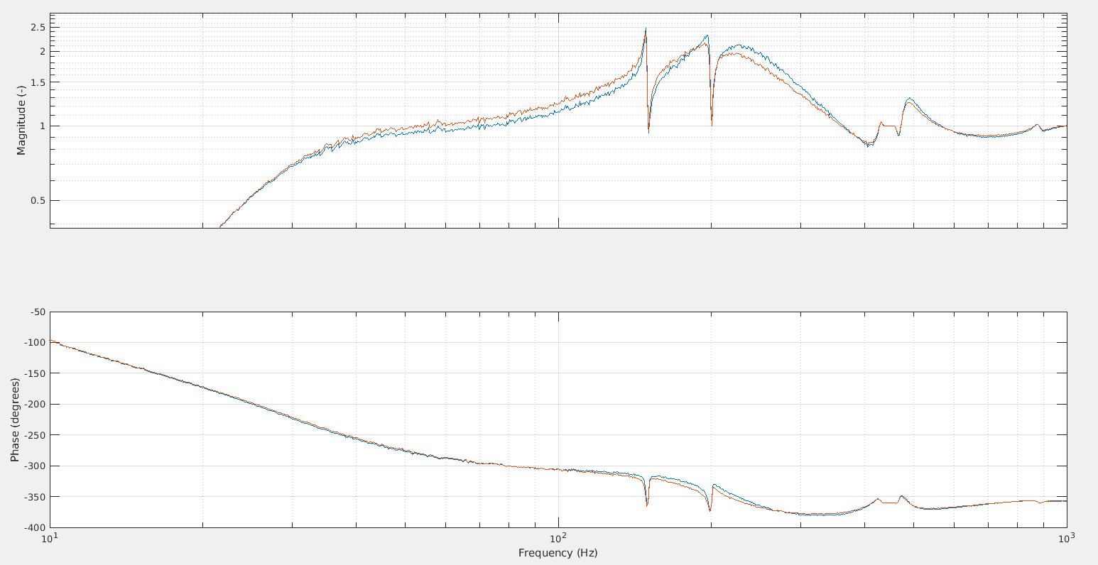 Then, the operator moved the misalignment to the value 240 for SR_TY_INPUT. The pole frequency raised up to 230 Hz. In this configuration, we did the following injections: