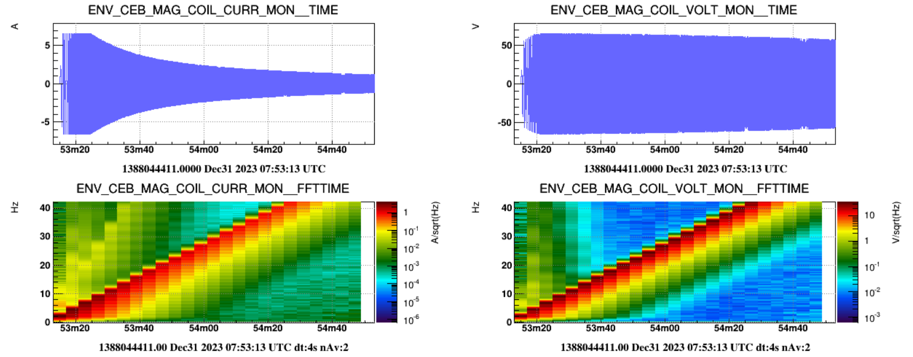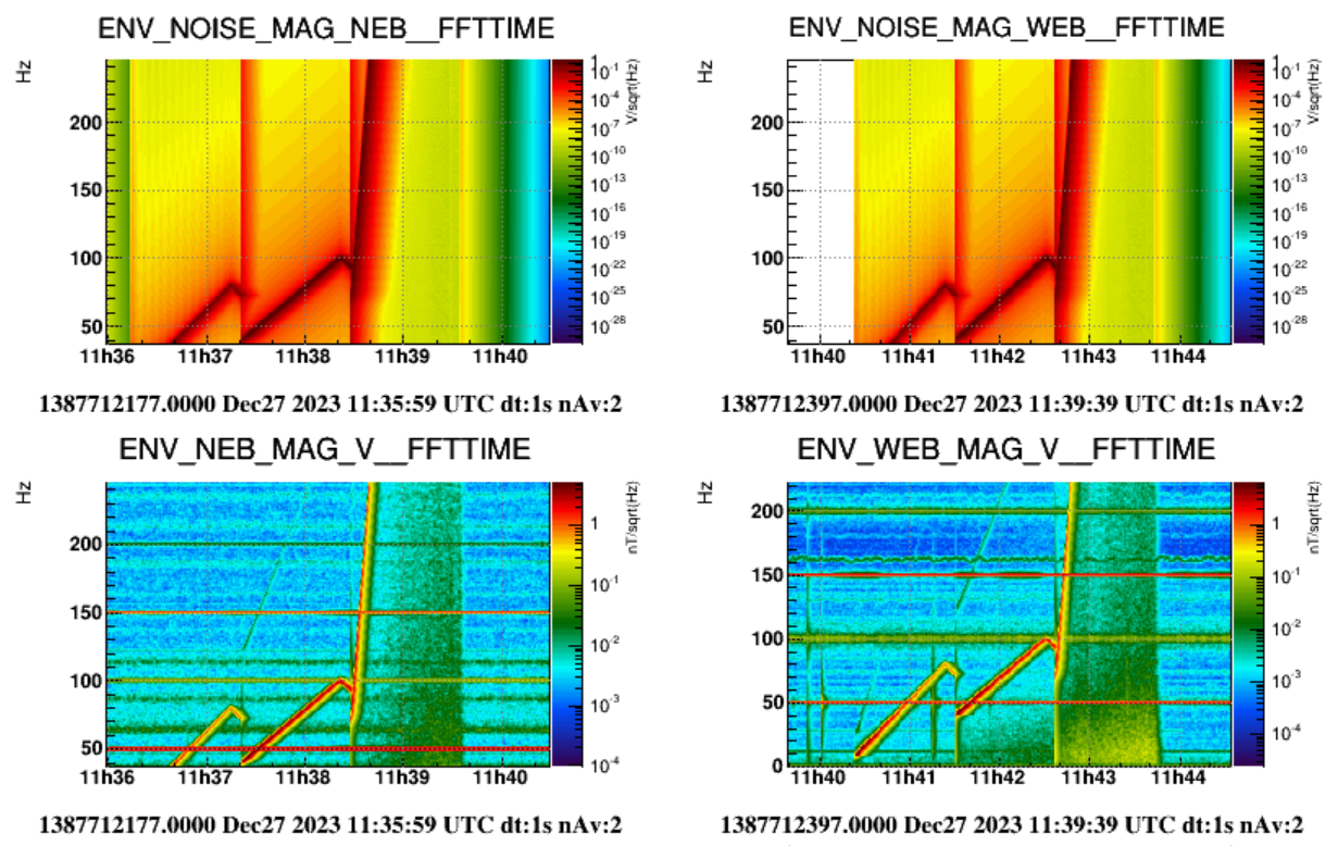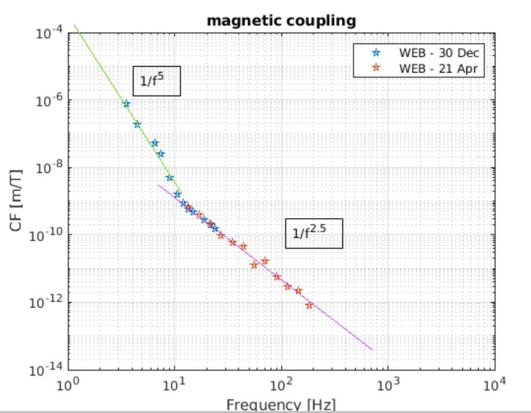 We notice that during the louder sweep (70 to 1000 Hz at 9V) a broadband magnetic noise is also generated. The same occurred at both NEB and WEB, as shown in Figure 6. It has to be understood why.