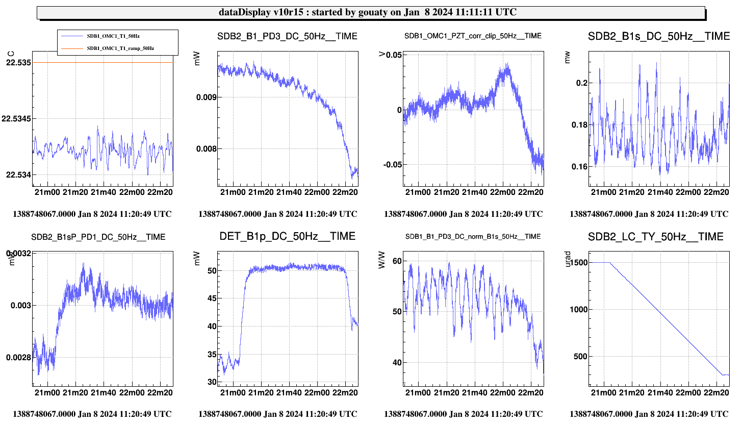 Tuning of polarization: we performed about -250 steps with OMC north waveplate to minimize B1sP with OMC locked on carrier TEM00 (see Fig.6).