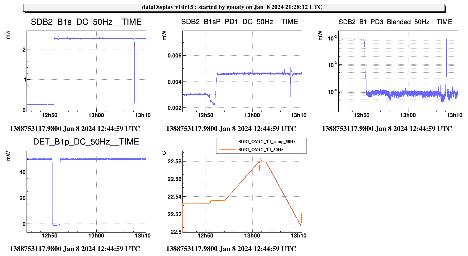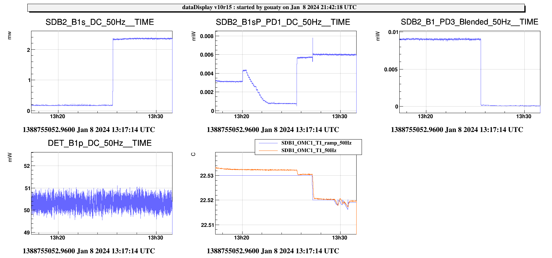 OMC locked on SB 56 MHz TEM00 at 13h35m10 utc, with B1 PD1/2 shutters opened (see Fig.7).