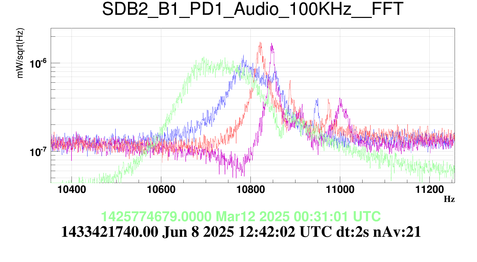 Figure 3 shows what I expect to be the order 6 mode. This one moves in the opposite direction, it is increasing, by 100Hz, while based on the order 2 mode it should increase by 300Hz. The average distance between HOMs based on this mode is 5600Hz.