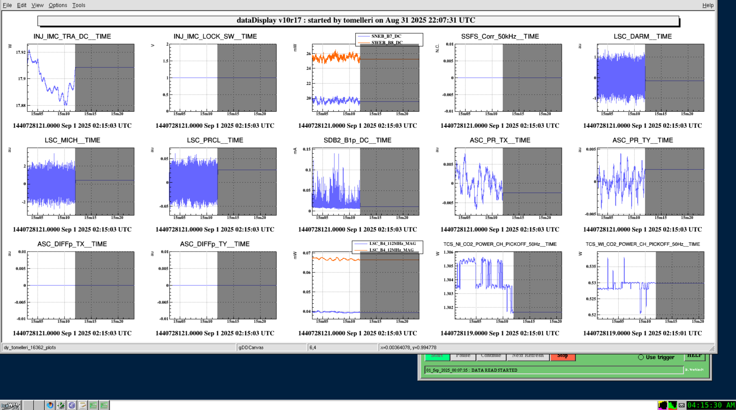04:16UTC - Experienced dataloss lasting ~30 seconds, as seen from grayed out flags on DMS (fig.1) and lock acqusition channels (fig.2)