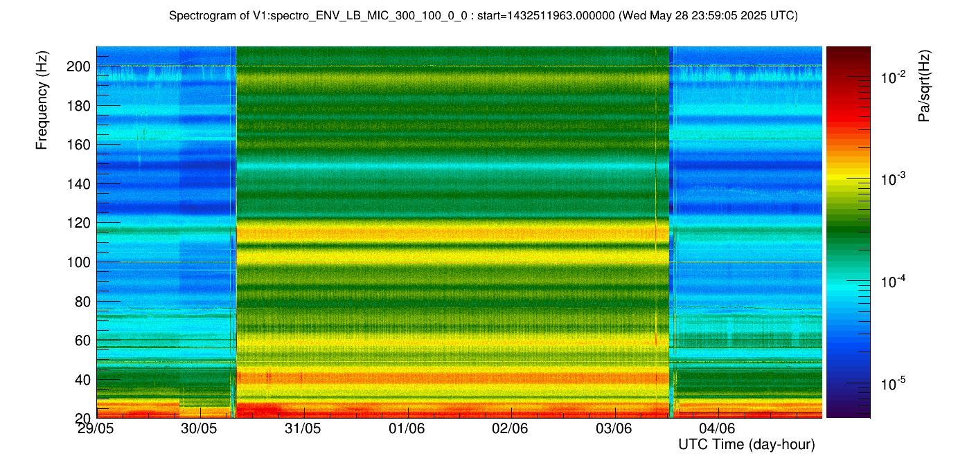 Since the recent increase in the INJ-HVAC flow rate (from 30 May to 4 June 2025), a new noise feature has become visible on the microphones and accelerometers located on the Laser Bench and the External Injection Bench inside the Laser Lab.