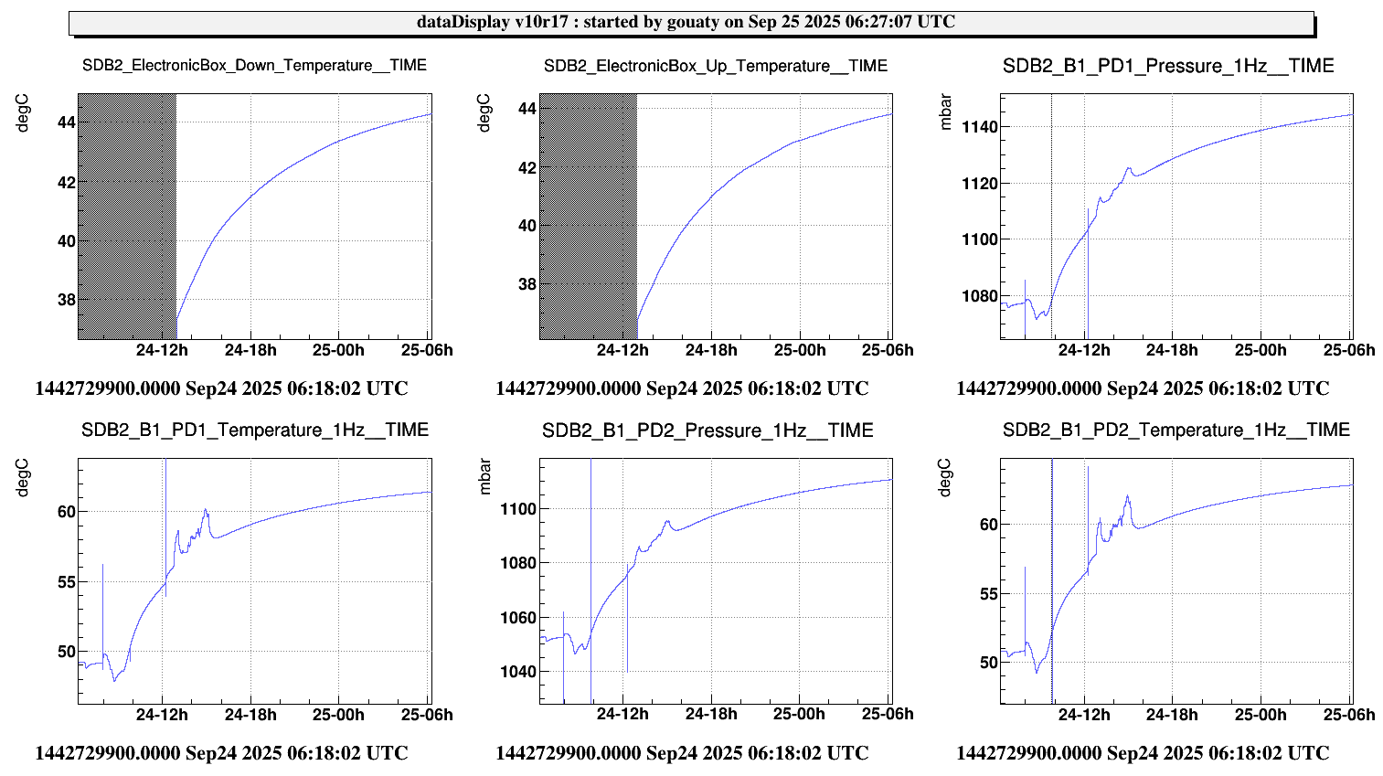 Fig.5 shows the evolution of the temperature inside the electronic container after 1 night, as well as the evolution of the pressure and temperature inside the B1 airboxes. Everything thing seems normal so far. We are still in the temperature transient.