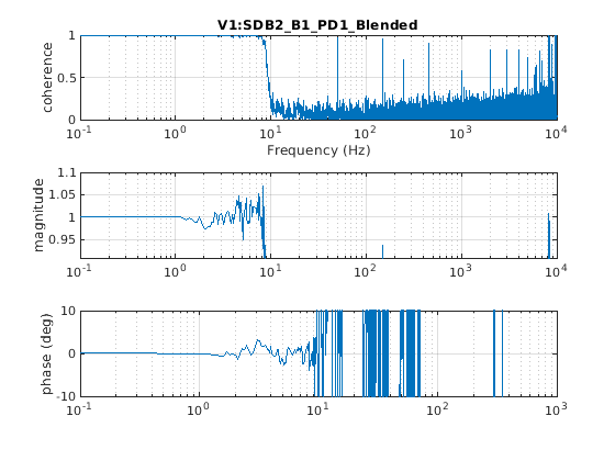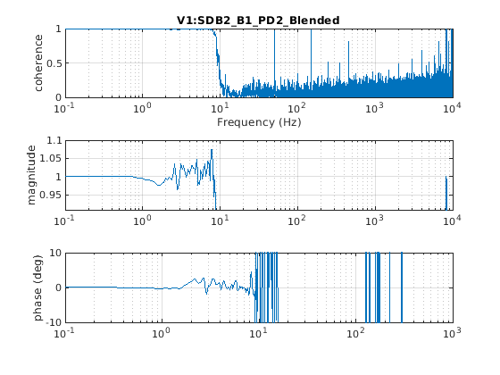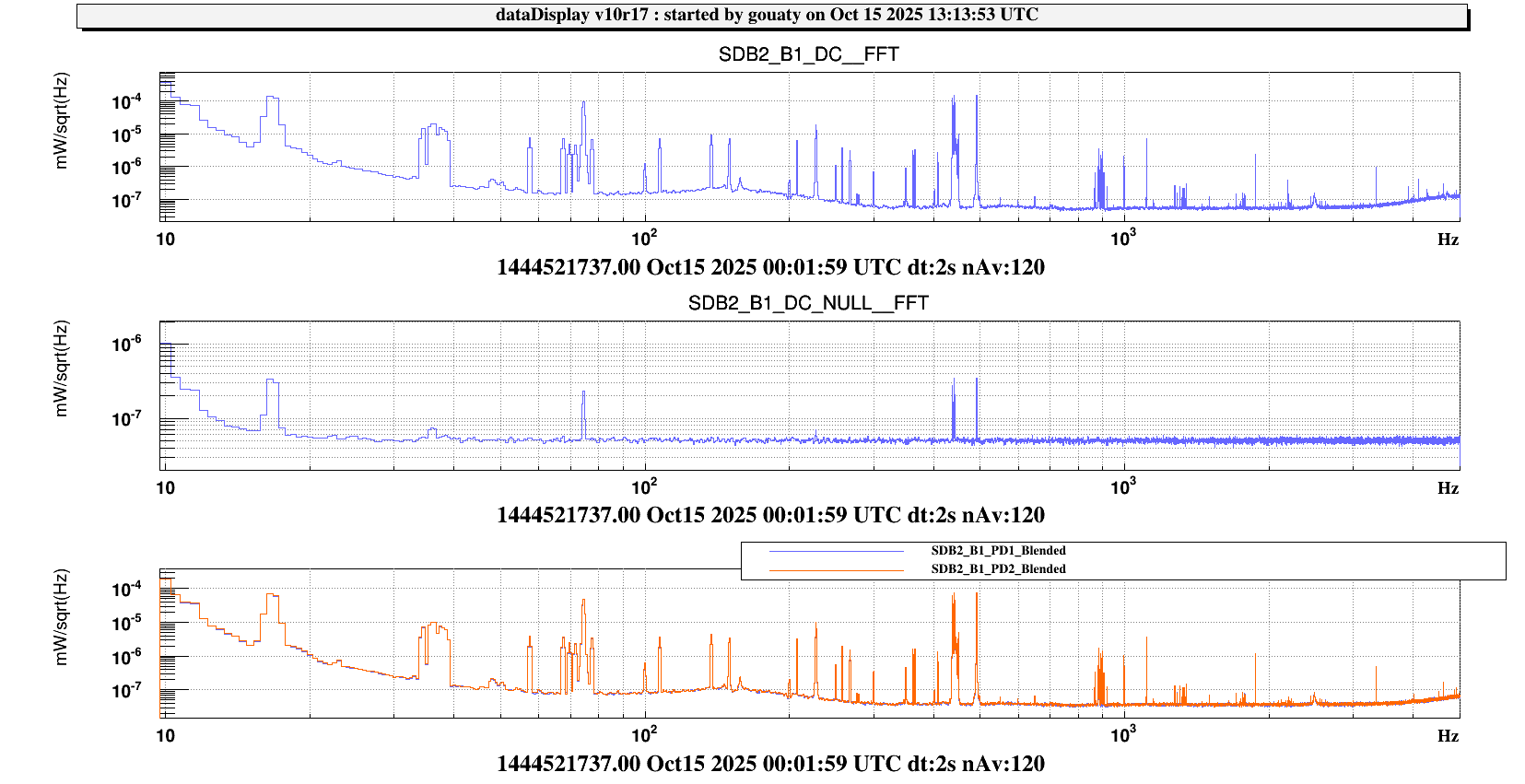 We collected some data from 14h18m20 utc to 14h22m20 utc, with the OMC close to the resonance of this SB TEM00 mode (with 0.06 mW on B1_DC). We used these data to check the blending of the photodiodes (see Fig.1 and 2 for B1_PD1 and Fig.3 and 4 for B1_PD2). The overlap between the blended signal and the DC signal seems to be reasonable and the TF are qualitatively quite similar for B1_PD1 and B1_PD2, therefore we decided to not update the blending filters of B1_PD2. A more precise check will be performed once we have new data in DC readout.