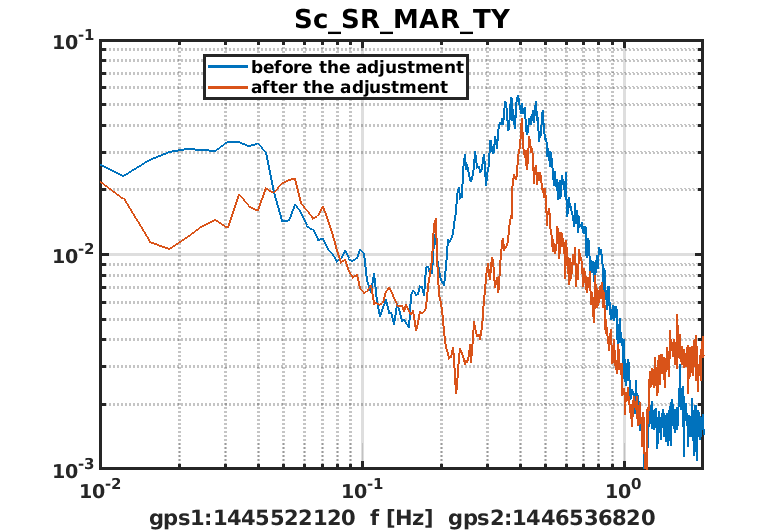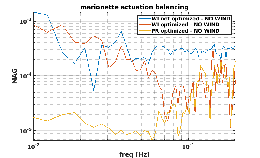 Fig 6 shows DIFFp_TY, the last d.o.f. on which NI WI actuation balancing should have an impact. In this case no improvement is visible: the recent data are even worse. This is something to better investigate: a different noise source needs to be identified, which overcome the effect of the actuation mis-balancing.