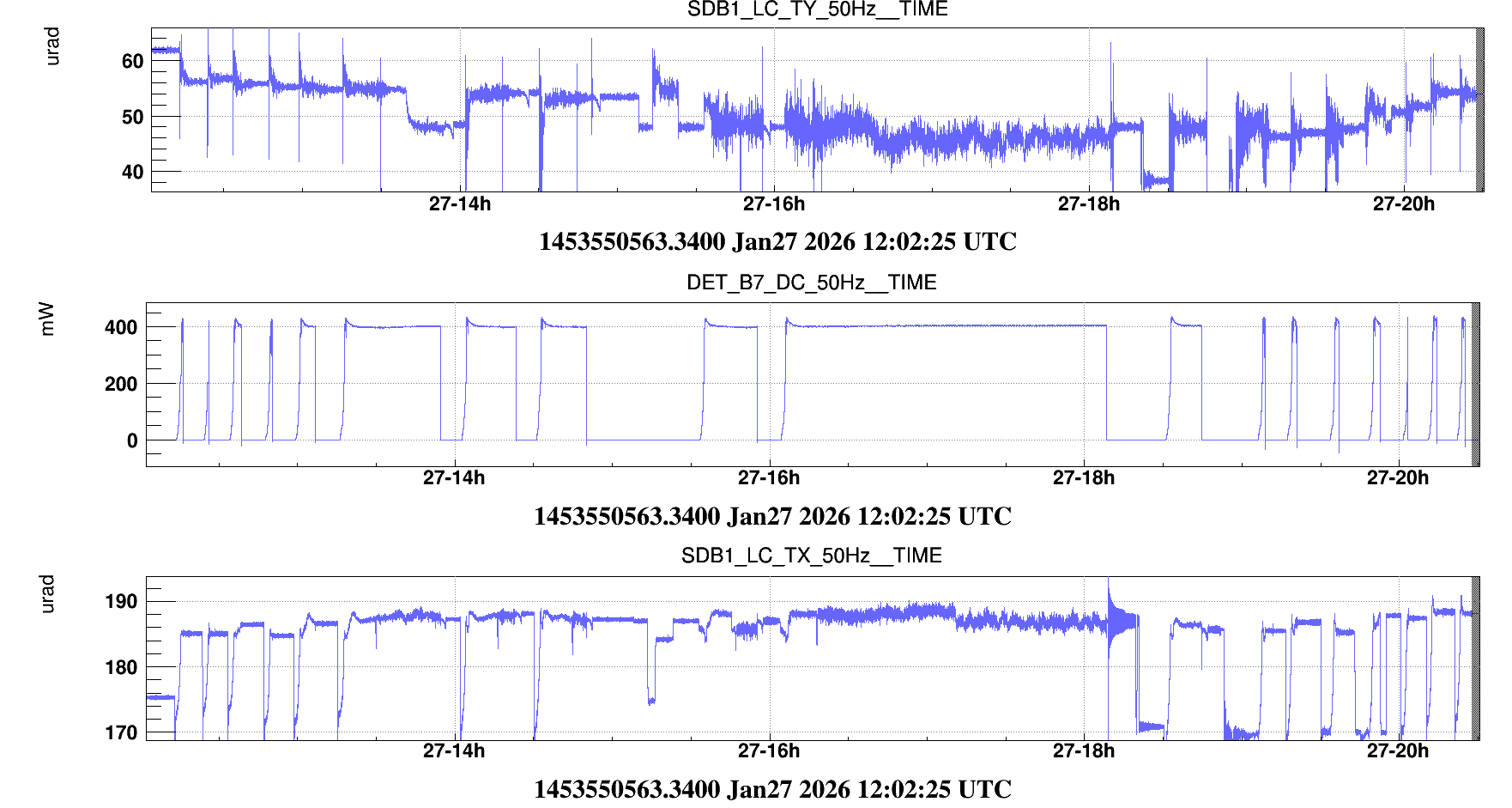 This however did not allow to reach CARM NULL 1F, with unlocks in the first few minutes of CARM NULL persisting. It is unclear to me if it is the problem for the past two days coming back, or if there is a change in the SDB1 control that I forgot to undo, and that proves to be critical. The sea activity is also increasing with the sea activity flag in red, and the IP in yellow, which is definitely not helping.