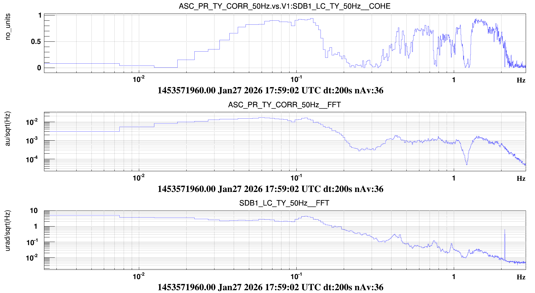 However, the bench has been moving much more in TY, with a peak at 100mHz. I don't know if this is due to a higher ground motion, something that I have forgotten to do this time. There is 1.5 hours of lock in LN2/LN3 with this signal in loop.