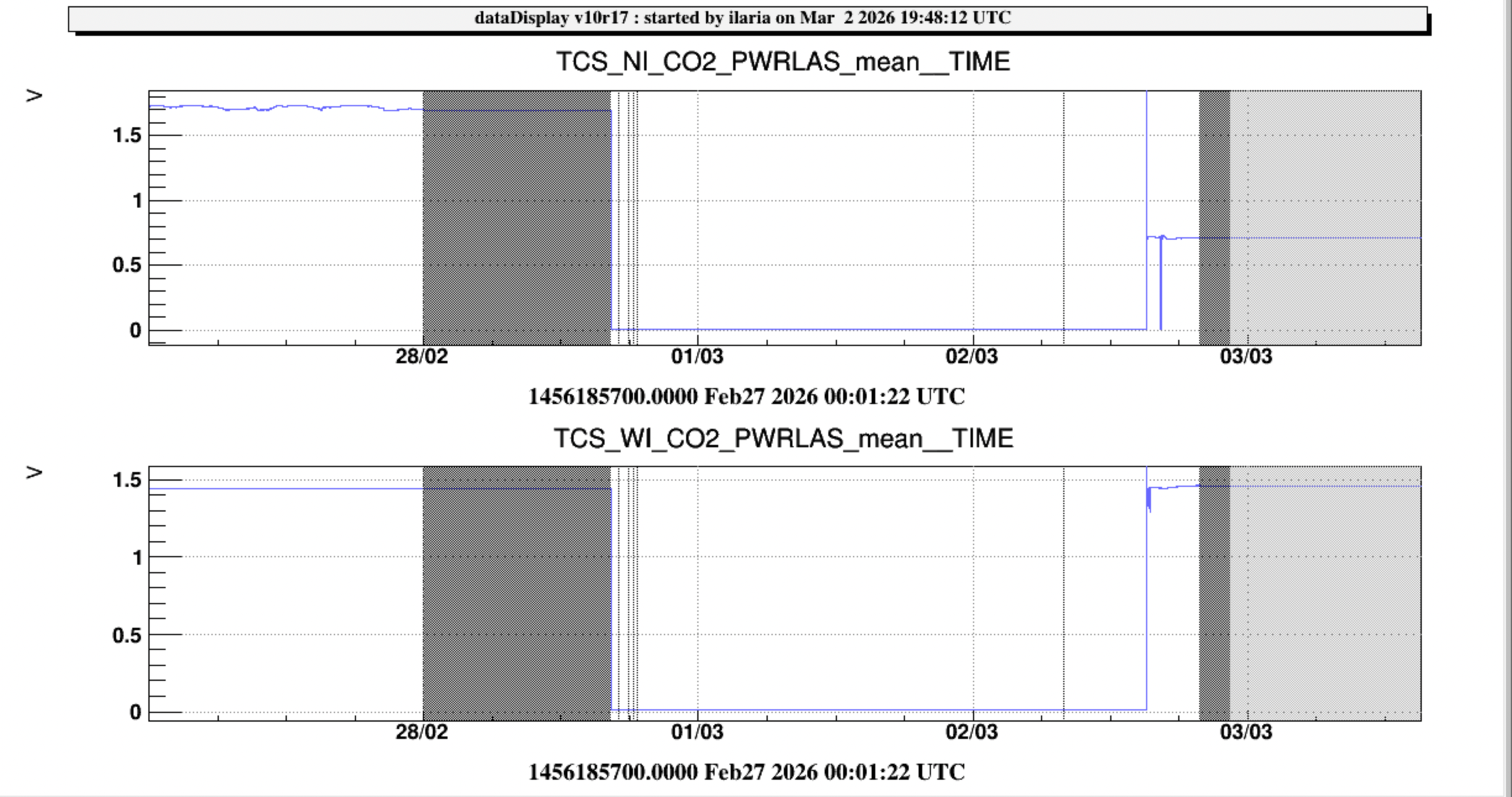 After these checks, in the afternoon, at around 15:30 UTC, the entire system was switched on again (chiller + main lasers + auxiliary lasers).